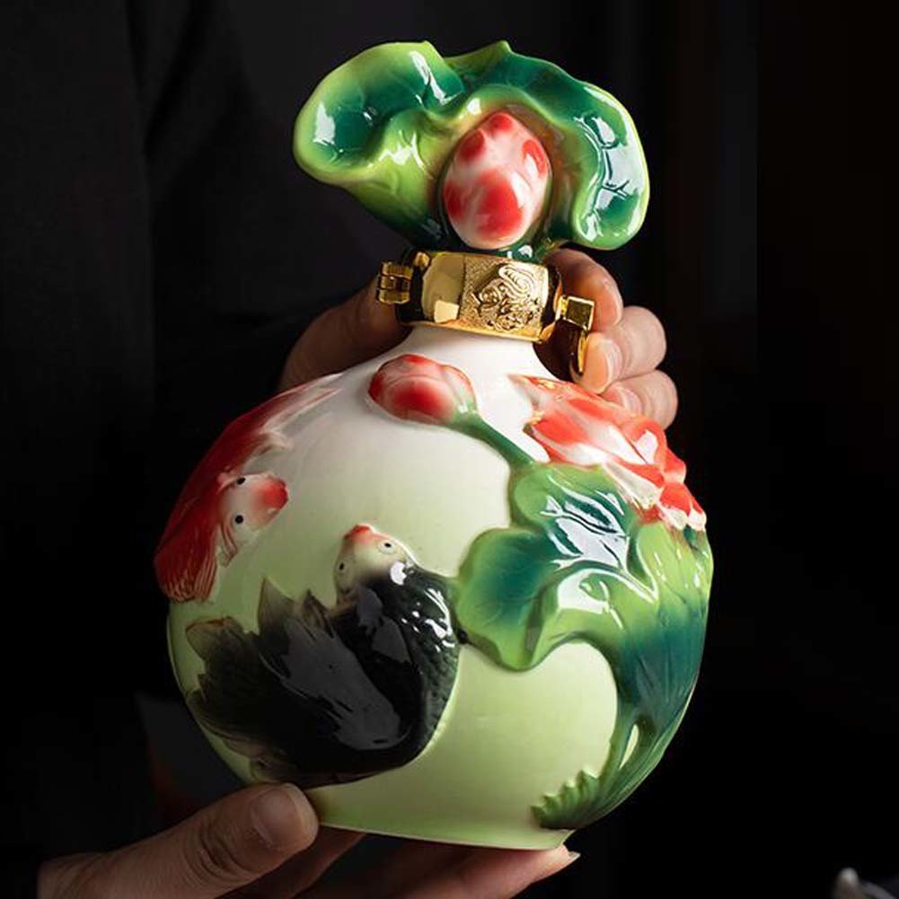 17oz Enamelled Ceramic Wine Jars Koi Carp Lotus Flower White Wine Empty Bottle Wine Jug Chinese Style Wine Vase Flask Flagon 17oz Enamelled Ceramic Wine Jars Koi Carp Lotus Flower White Wine Empty Bottle Wine Jug Chinese Style Wine Vase Flask Flagon