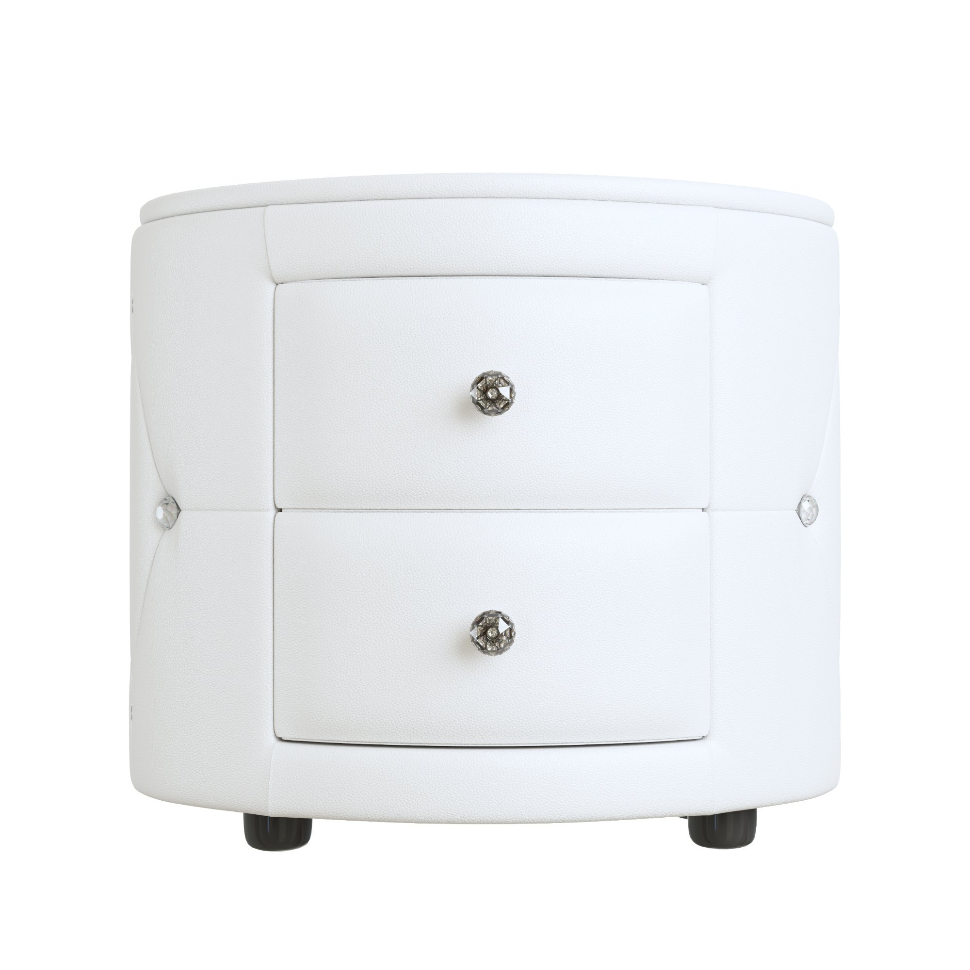 Queen Bed with LED Lights&Storage System, Two Nightstands with Crystal Decoration,WhiteThis tufted PU upholestered bed with LED lights is easy to make your home unique.The LED lights have so many color options, bringing you a romantic night and a comfortable sleep.The height of headboard is adjustable from 43inch-45inch.A hydraulic storage system underneath the mattress makes storing your bedroom things in smaller spaces possible.Features:Product TypePlatform BedColorWhiteProduct materialPU+Plywood+MDFOverall Product DimensionPlease refer to the Size imageNumber of Slats26Weight Capacity600LBSRecommended Mattress Thickness10"-12"Assembly RequiredYesCountry of OriginChina