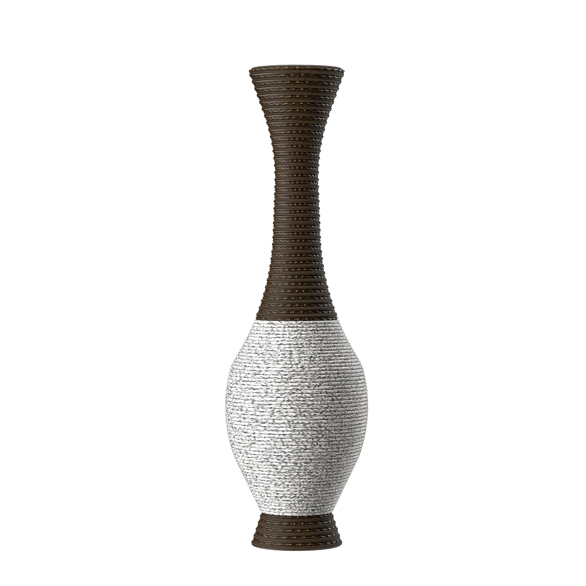 Elevate your home décor with this 39-Inch Tall Standing Designer Floor Vase, a captivating accent piece that seamlessly blends durability, elegance, and artistic design. Crafted from high-quality artificial rattan, this tall vase features a rich two-tone dark brown finish that adds depth and warmth to any room. Its commanding height and refined texture make it the perfect statement piece for living rooms, bedrooms, or open spaces that need a touch of sophistication. Whether filled with dried branches, tall wispy grass, or silk flowers, or showcased as a standalone sculpture, this vase brings timeless charm and character to your interior.