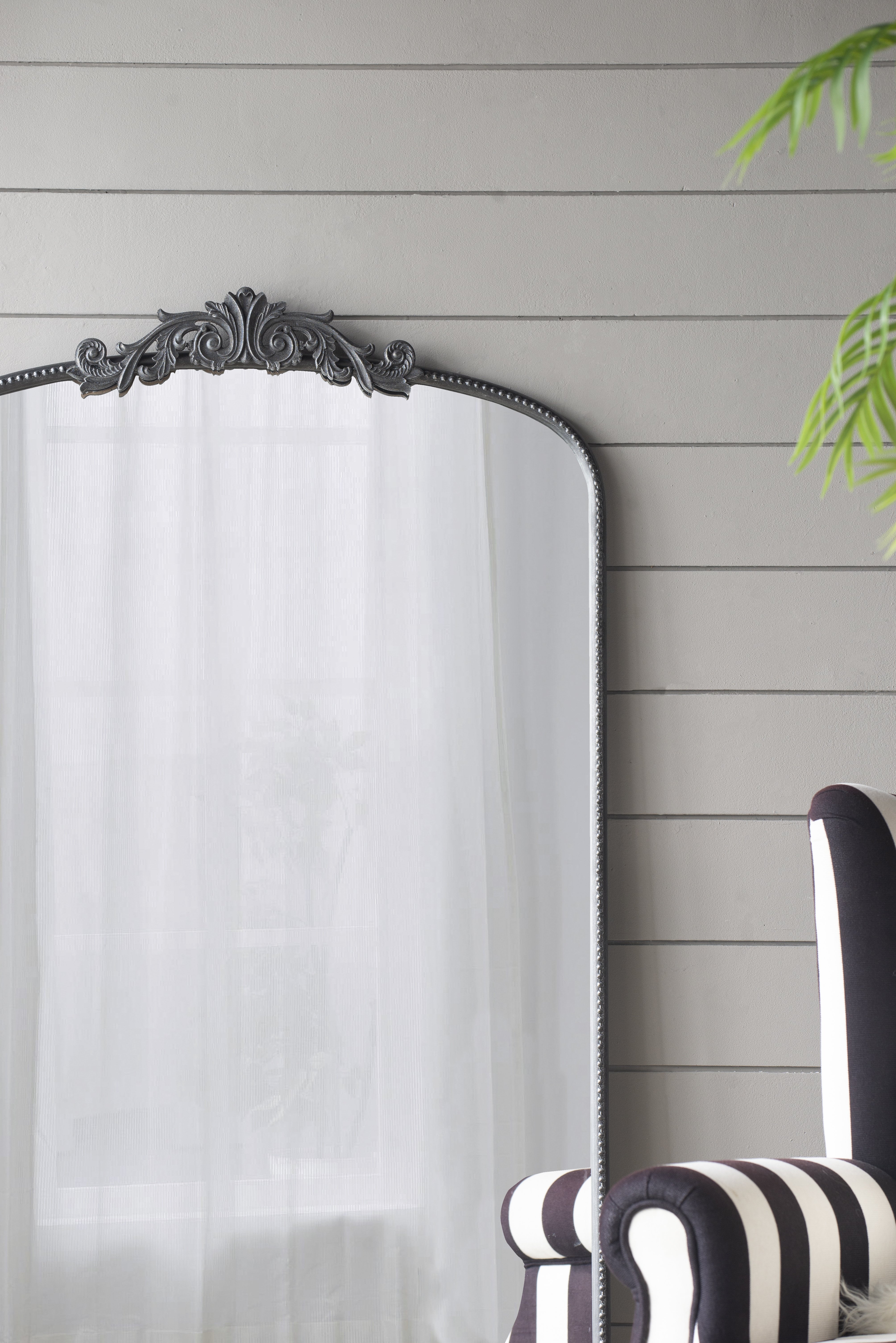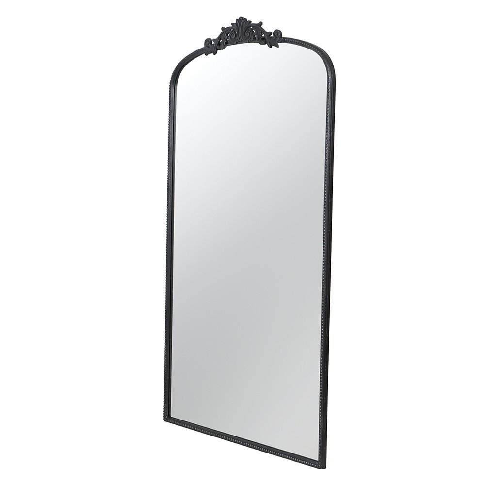 The DesignBoasting a grand arched silhouette, a smooth black frame, and an intricately crafted regal adornment at the head, this full-length mirror blends classic baroque style with versatile function. Measuring a large 66H x 36W x 2D, it will capture your whole reflection with ease while also elevating the decor in your living room or bedroom.