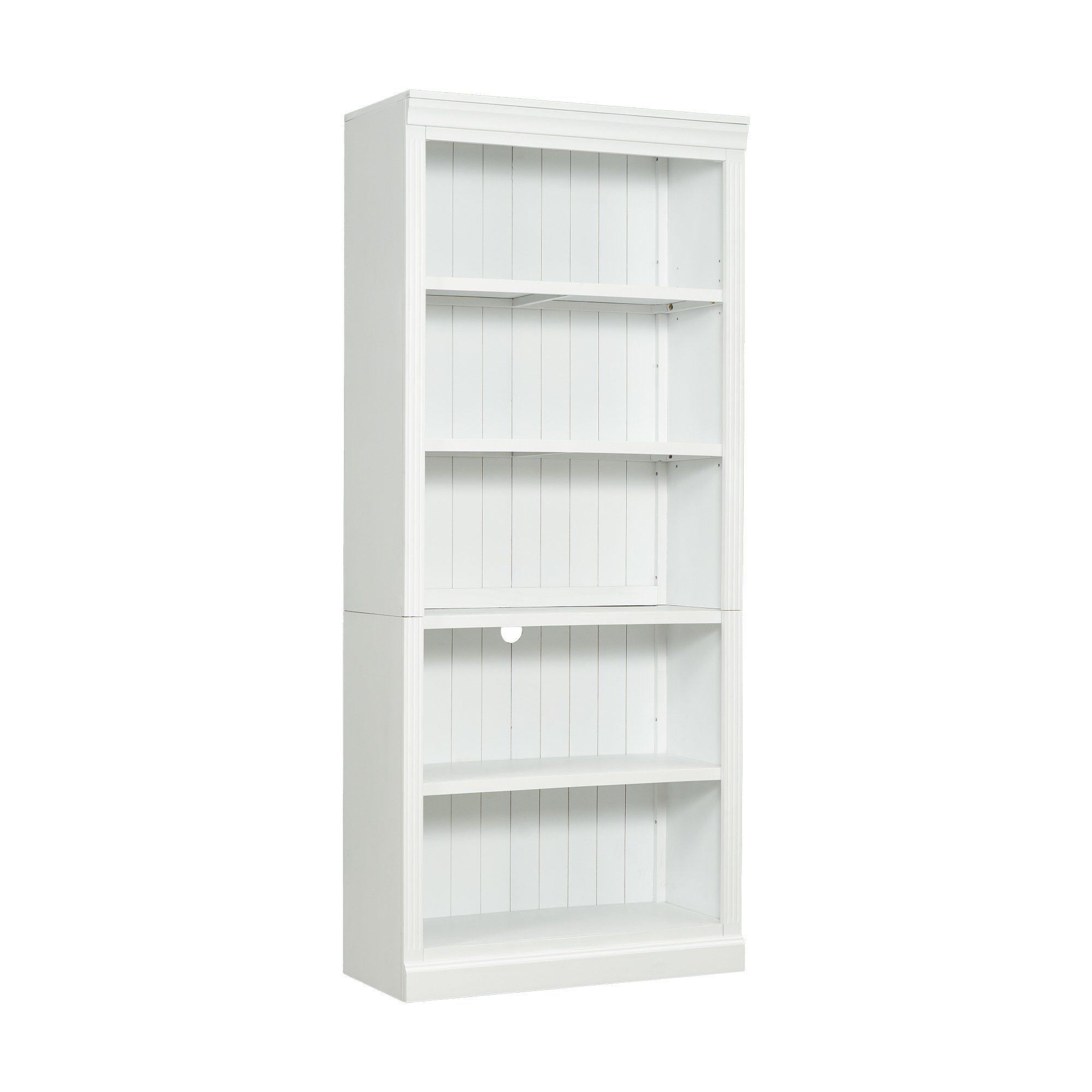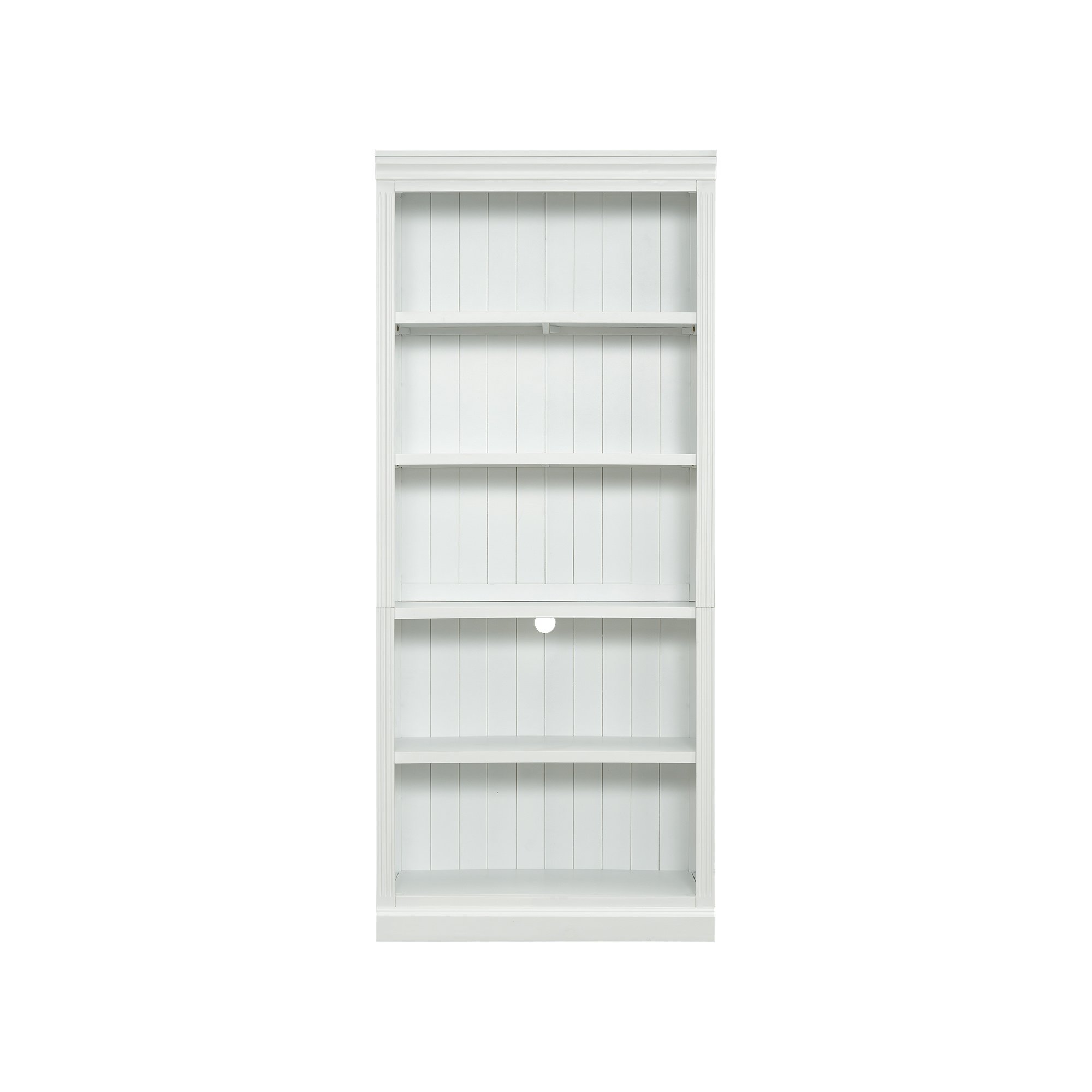 5 Tier Bookshelf with Adjustable Shelves and Cable Management - White Modern Design