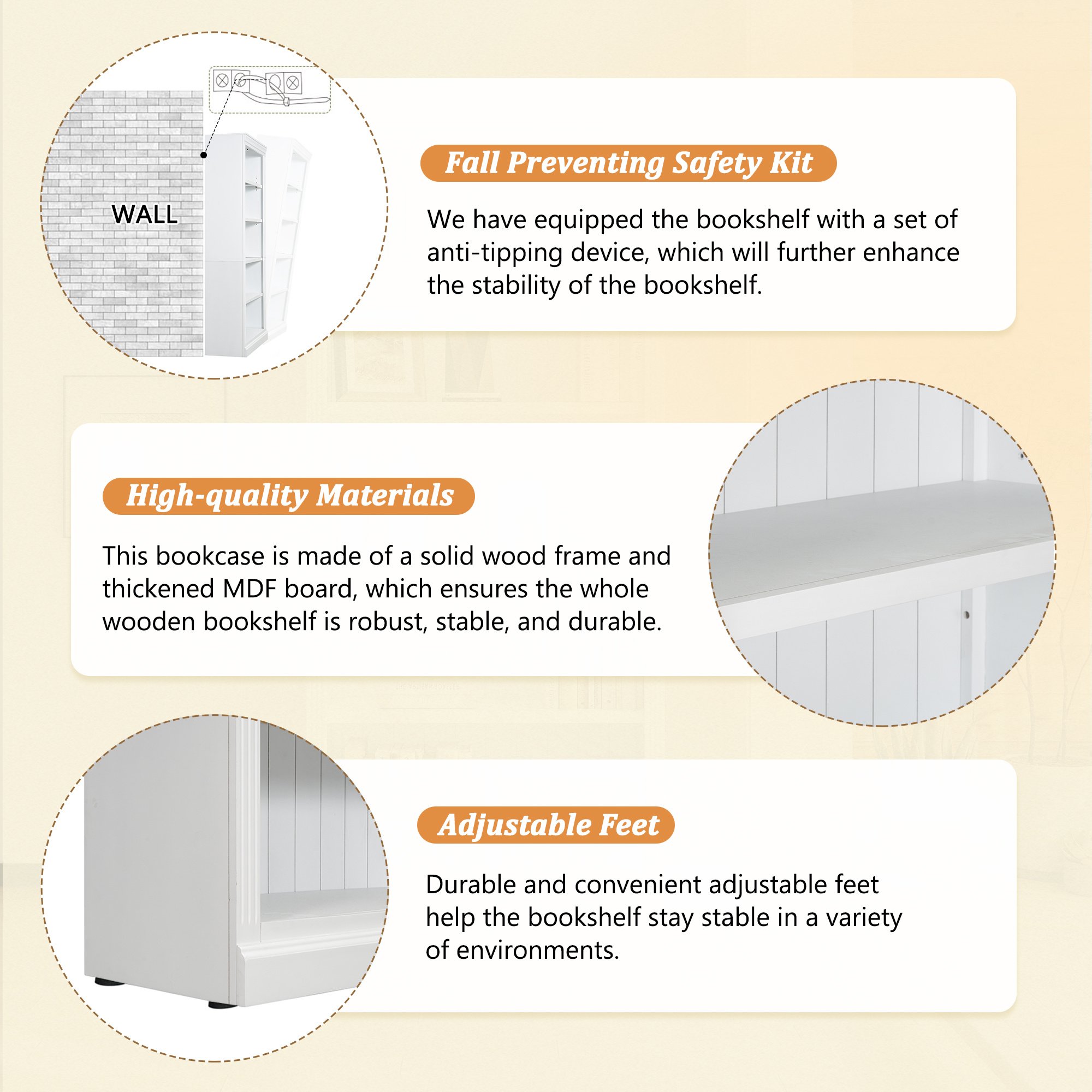 83.4" Tall Wood Bookcase,5-Tier Home Decor Bookshelves with Adjustable Storage Shelves,Storage Organizer for CDs/Books/Movies