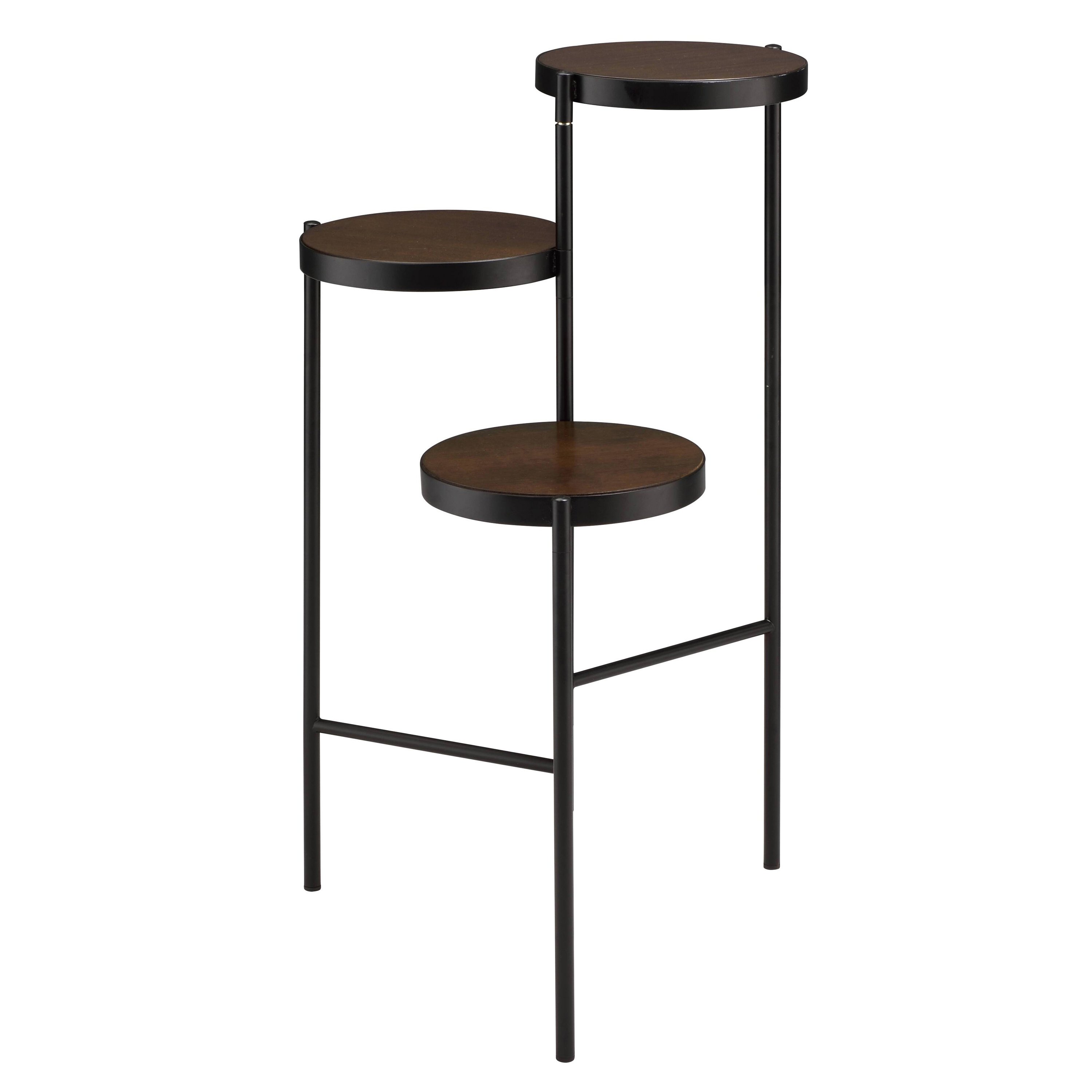The sleek combination of a black and walnut finish adds a sophisticated touch to your decor, while the three spacious tiers provide ample room to showcase your favorite plants, flowers, herbs, or decorative accents. Crafted with a durable metal frame and sturdy straight legs, this plant stand delivers reliable support and stability, ensuring your display remains secure and stylish.
