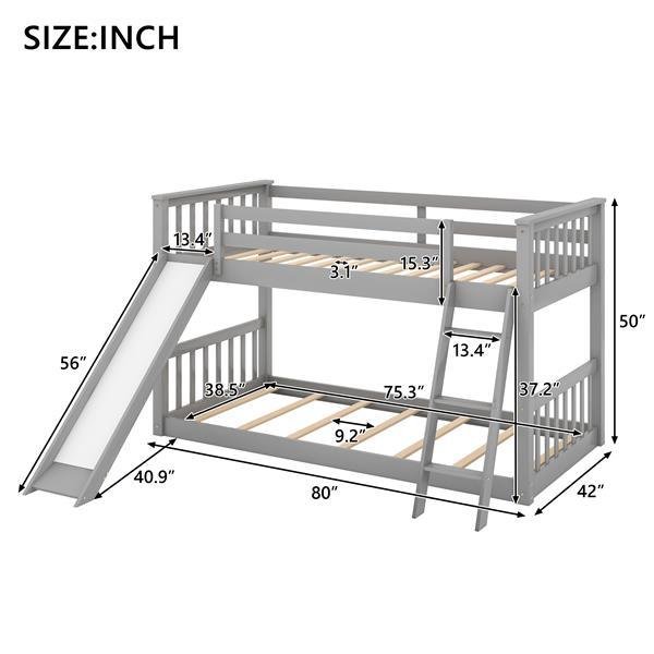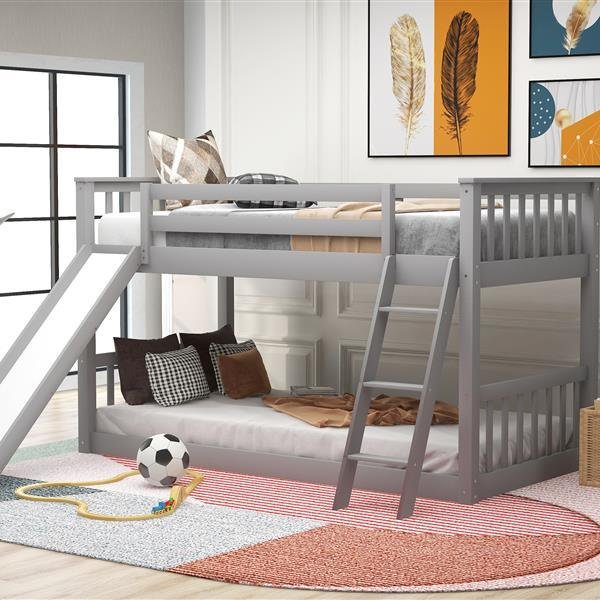 Bunk Bed with Convertible Slide and Ladder, Gray