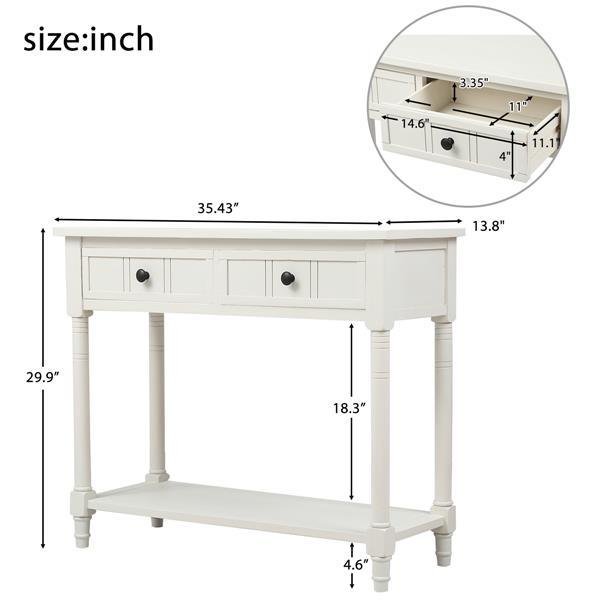 Console Table Traditional Design with Two Drawers and Bottom Shelf (Ivory White)