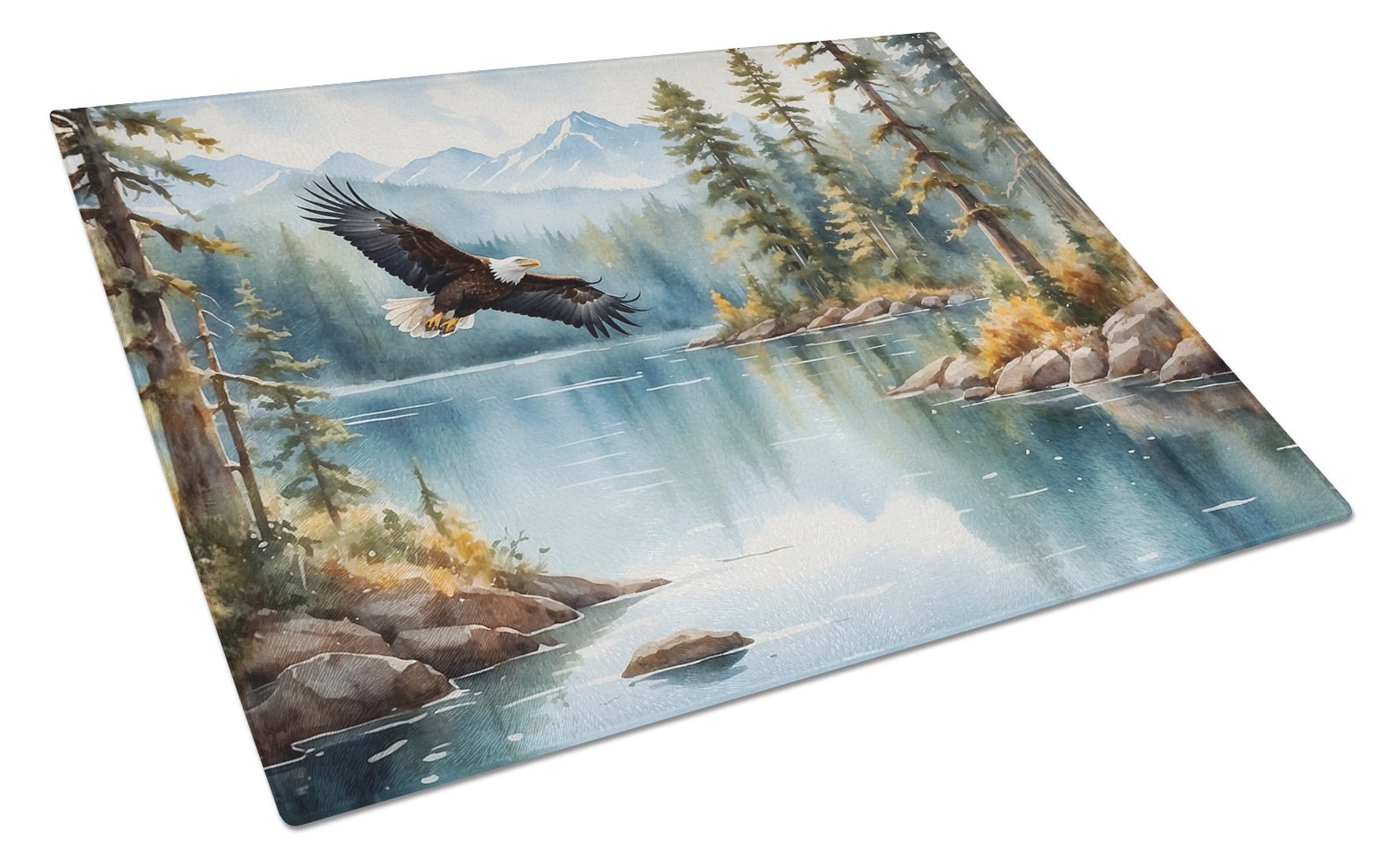 Glass Cutting Board featuring breed specific Eagle artwork. Introduce your kitchen to the vibrant, large Decorative Glass Cutting Board from Caroline's Treasures. Crafted from resilient tempered glass, this board is not only a utilitarian necessity but also a colorful art piece. With its generous dimensions of 15 inches in height and 12 inches in length, it offers ample space for all your cutting needs. Every piece showcases captivating artwork from distinguished artists, bringing an aesthetic edge to your kitchen. Beyond its attractive design, this cutting board ensures your countertop stays pristine and unscathed, owing to its heat-resistant properties. Engineered with user convenience in mind, it features non-skid feet for stability, and rounded corners for additional safety. Its robust construction renders it virtually unbreakable, guaranteeing longevity. The board comes with protective feet bumpers, maintaining its position during use. This product is recommended to be hand washed only. Proudly printed and assembled in the United States, this cutting board exemplifies superior craftsmanship. With Caroline's Treasures' Decorative Glass Cutting Board, you're investing in a blend of functionality and artistic flair.