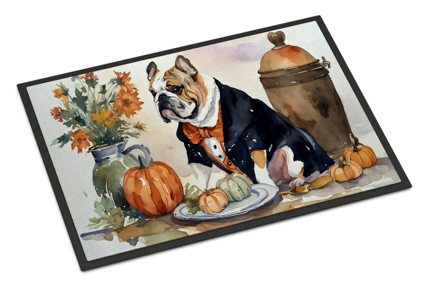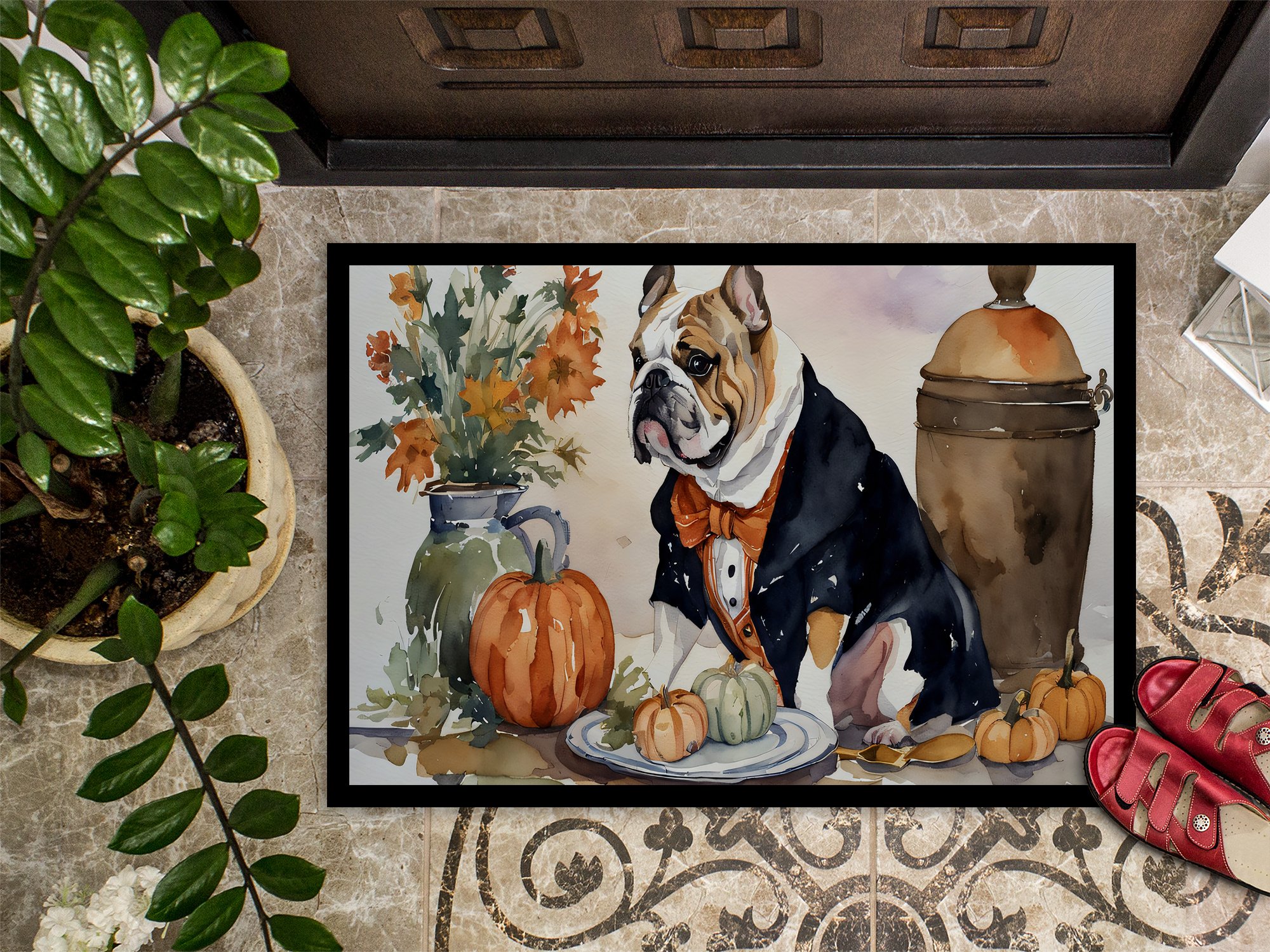 English Bulldog Fall Kitchen Pumpkins Doormat Front Door Mat Indoor Outdoor Rugs for Entryway, Non Slip Washable Low Pile, 24H X 36W