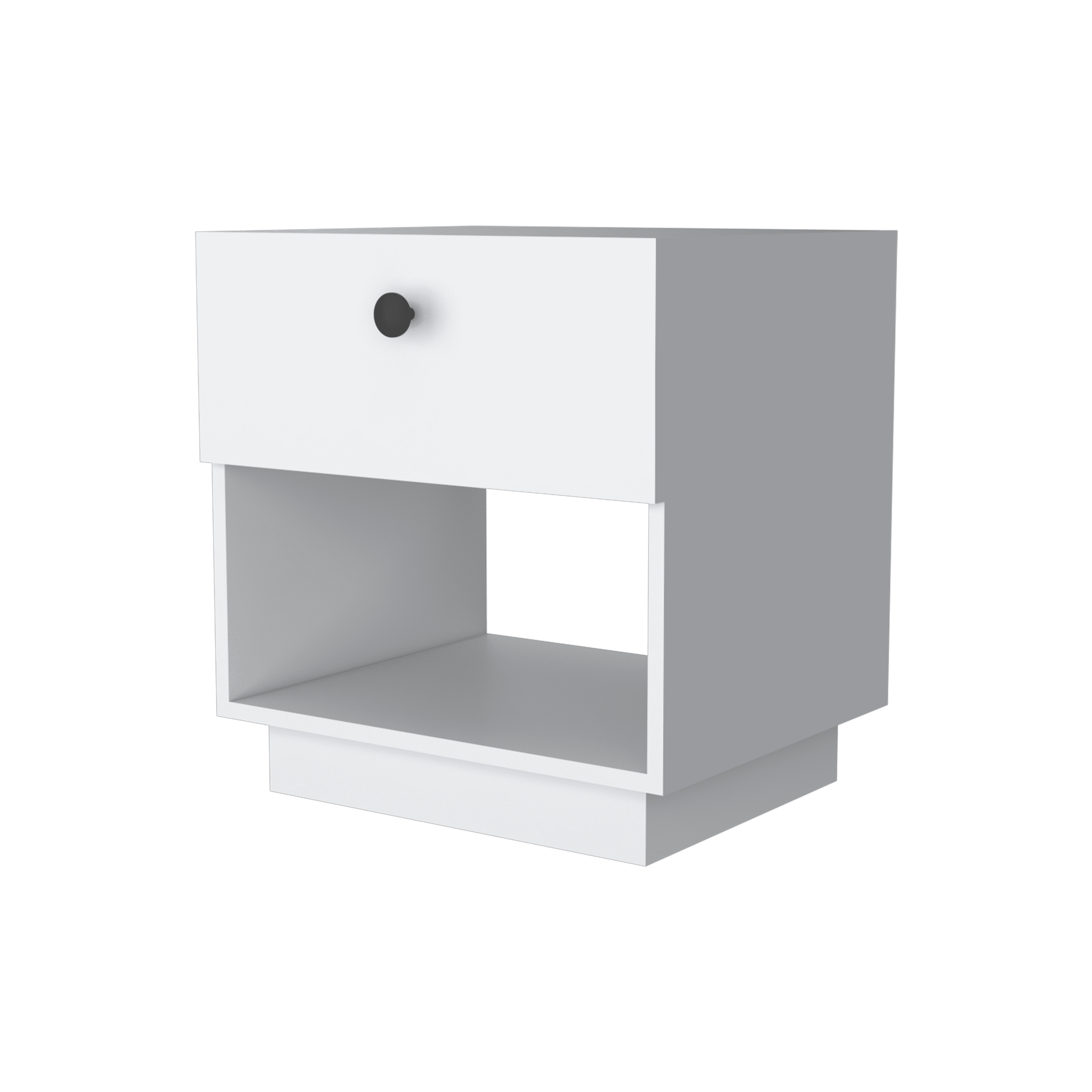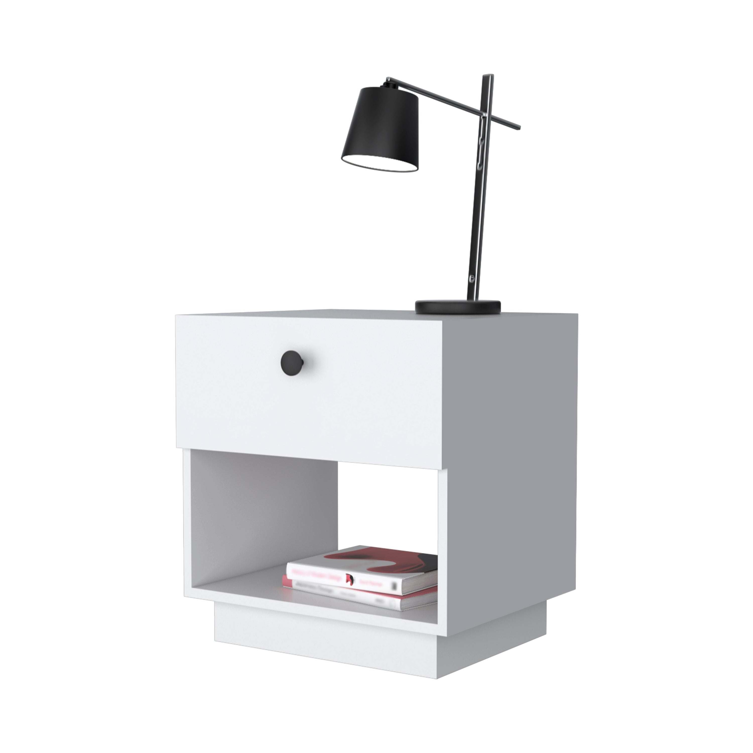 Elevate your bedroom with the Ethan White 1-Drawer Nightstand — where elegance meets everyday functionality. This versatile nightstand features a smooth white manufactured wood finish that effortlessly complements a variety of interior styles, from modern minimalist to cozy farmhouse. The spacious open shelf allows you to display your favorite decor pieces, while the roomy drawer keeps your essentials neatly tucked away but always within reach. Its easy-glide drawer mechanism ensures smooth operation, making nighttime routines more convenient and clutter-free.