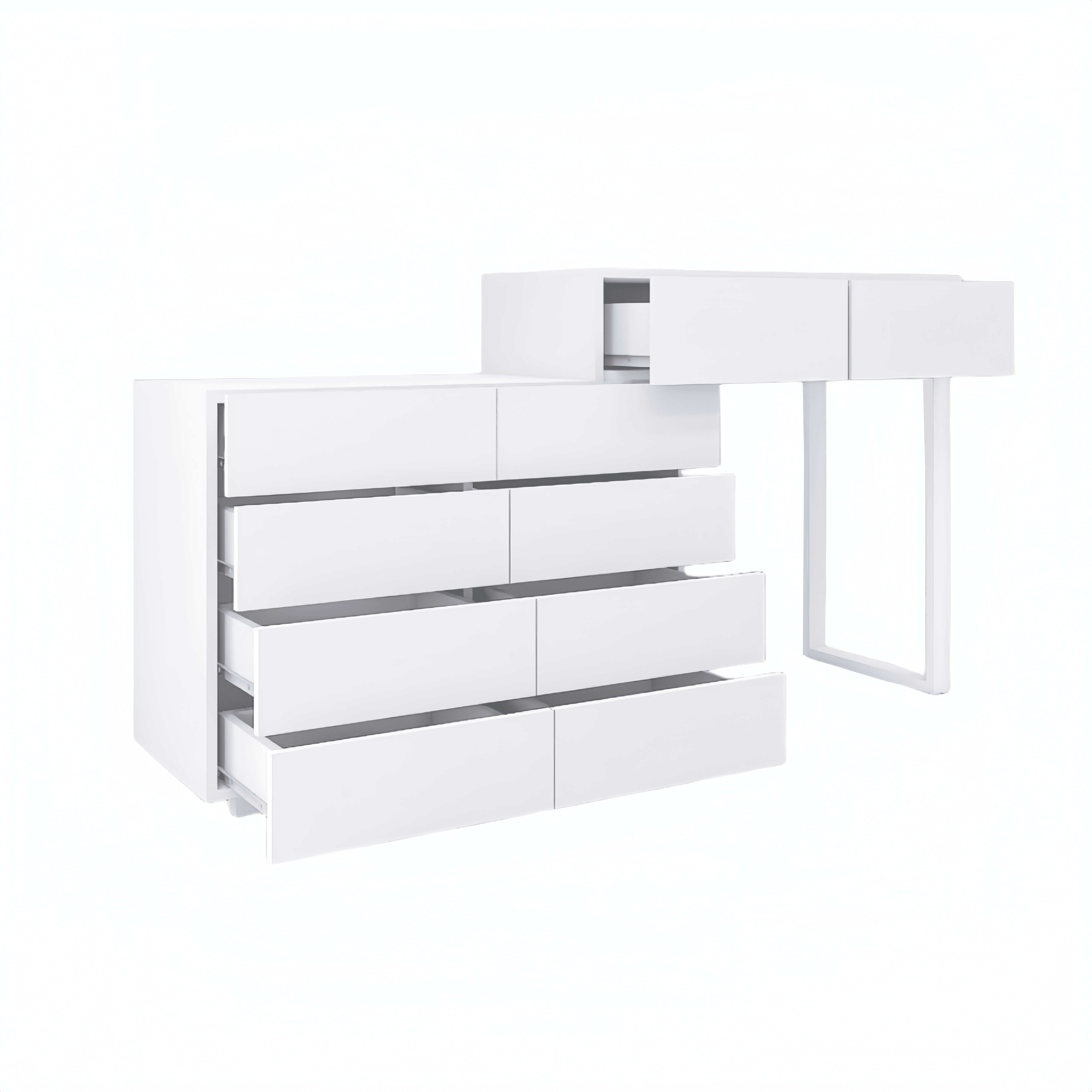 Extended Desktop 10 Drawers Chest of Drawer without Handle White Color Vanity