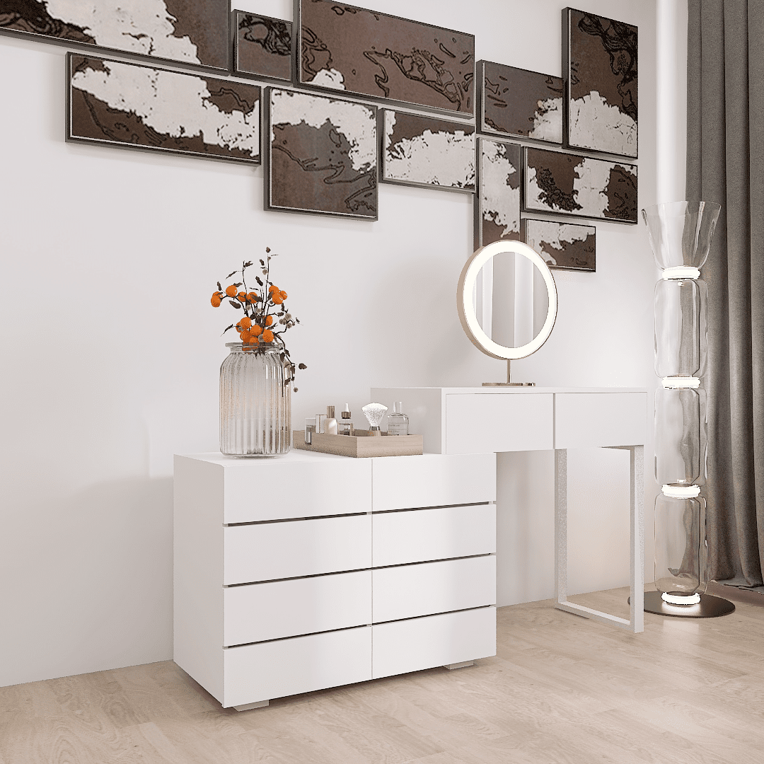 Home > Extended Desktop 10 Drawers Chest of Drawer without Handle White Color Vanity