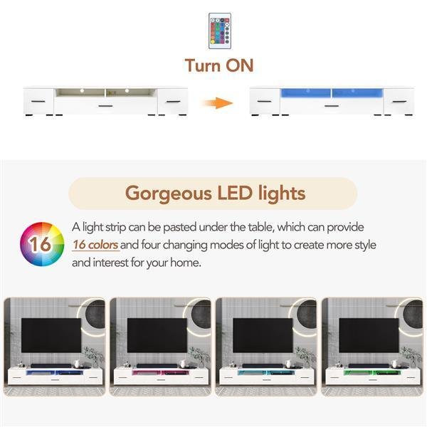 Extended, Minimalist Design TV stand with Color Changing LED Lights, Modern Universal Entertainment Center, High Gloss TV Cabinet for 90+ inch TV