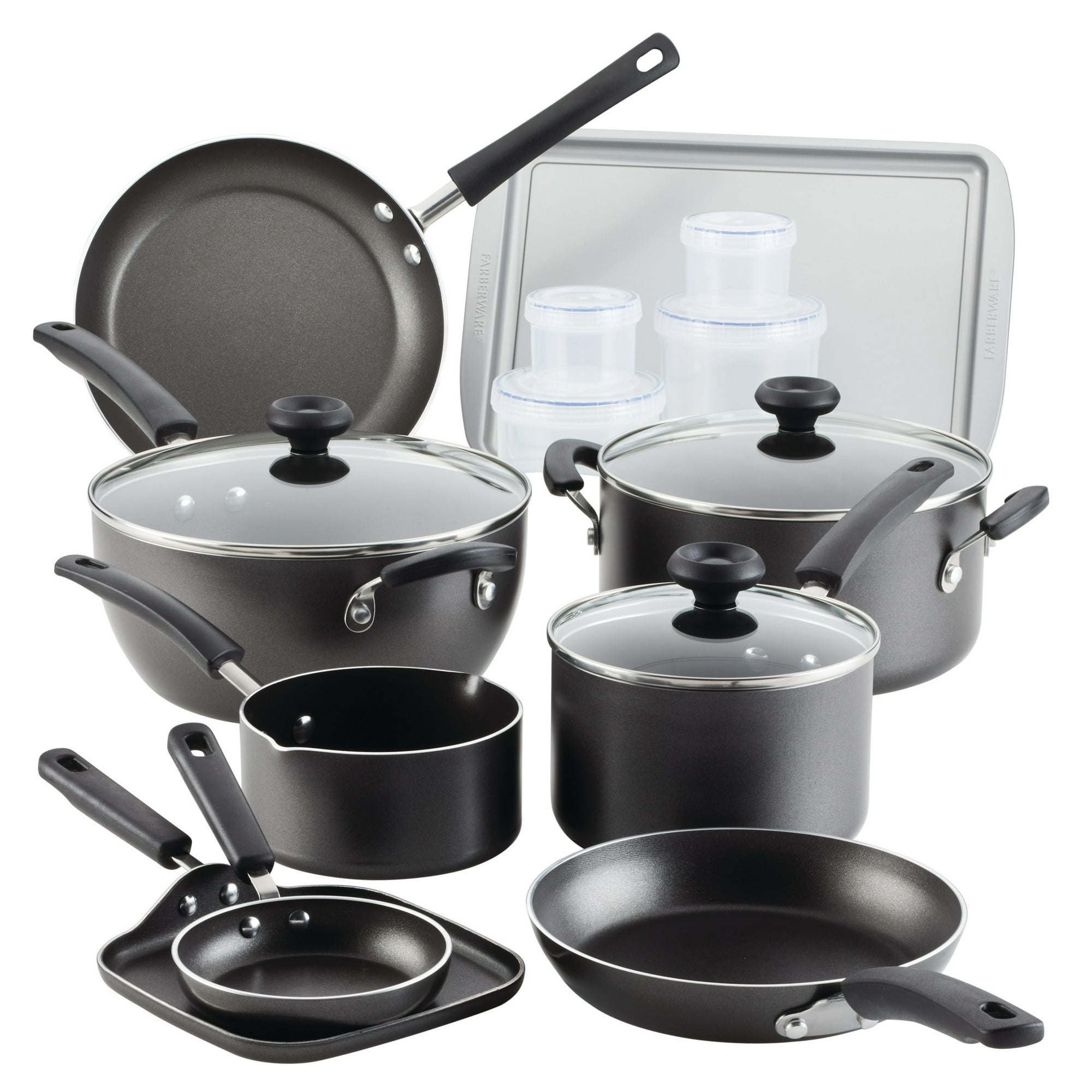 Farberware Easy Clean 20 Piece Aluminum Nonstick Cookware Pots and Pans Set, Gray Farberware Easy Clean 20 Piece Aluminum Nonstick Cookware Pots and Pans Set, Gray Farberware Easy Clean 20 Piece Aluminum Nonstick Cookware Pots and Pans Set, Gray