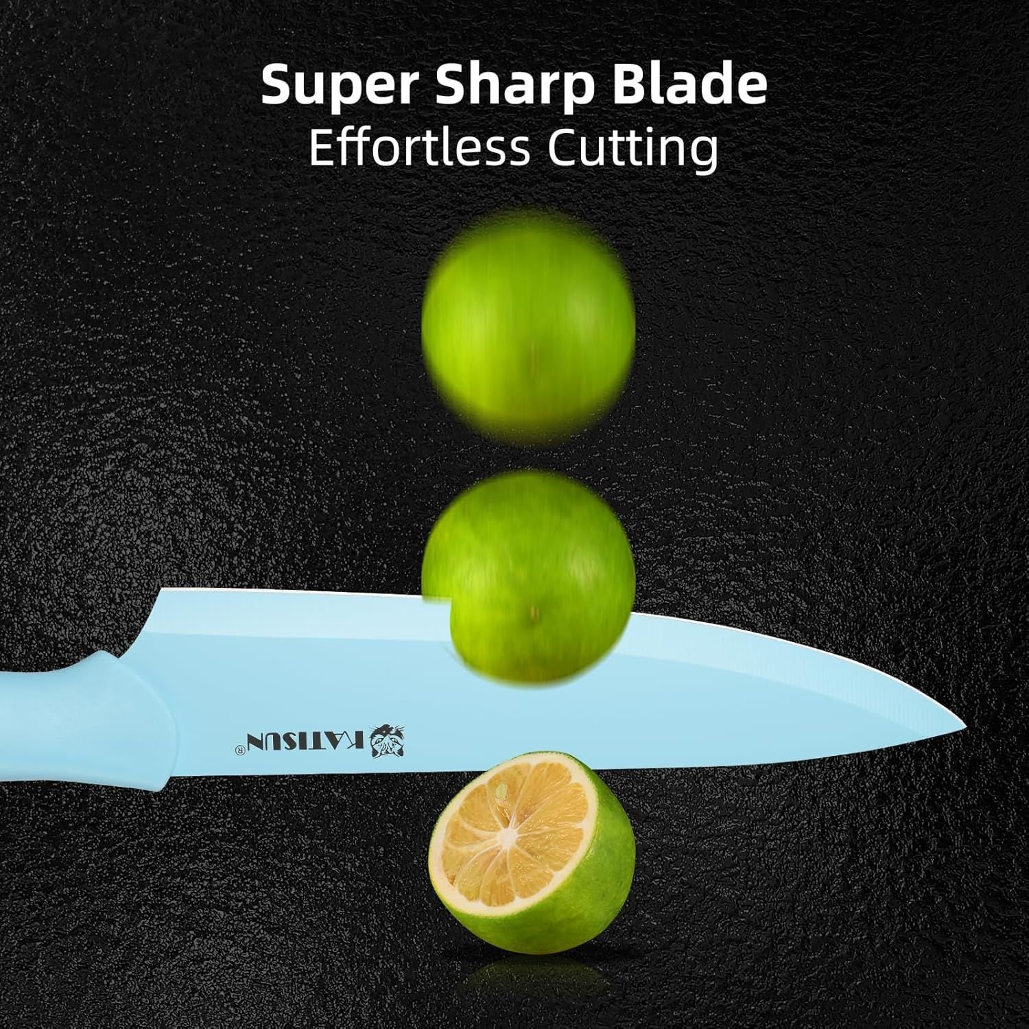 Home > Kitchen Knife Set with Guards, 13 Piece Blue Coated Stainless Steel Boxed Knives Set, Anti-Rust and Dishwasher Safe