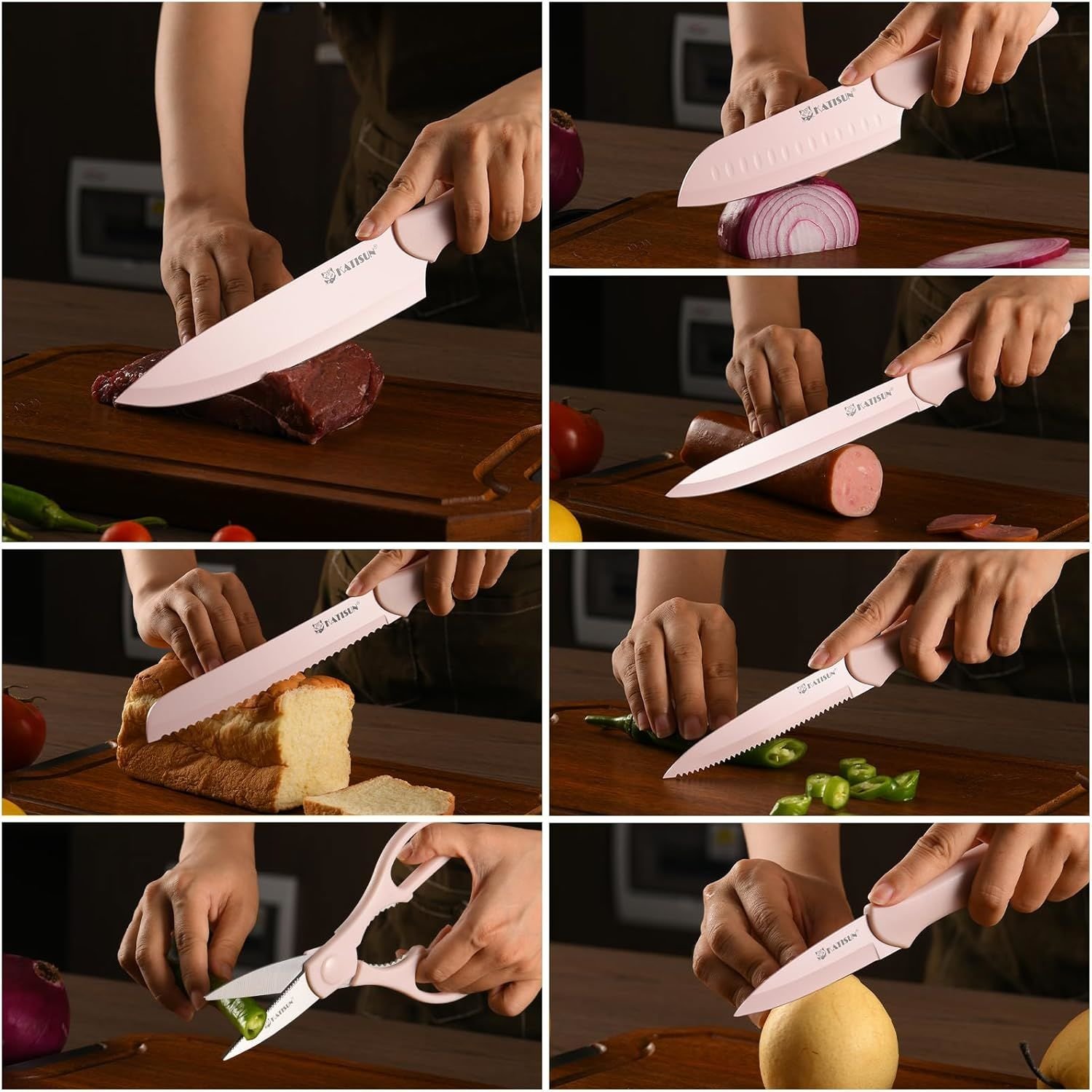 Kitchen Knife Set with Guards, 13 Piece Pink Non-Stick Paint Boxed Knives Set, Anti-Rust and Dishwasher Safe Kitchen Knife Set with Guards, 13 Piece Pink Non-Stick Paint Boxed Knives Set, Anti-Rust and Dishwasher Safe Kitchen Knife Set with Guards, 13 Piece Pink Non-Stick Paint Boxed Knives Set, Anti-Rust and Dishwasher Safe Kitchen Knife Set with Guards, 13 Piece Pink Non-Stick Paint Boxed Knives Set, Anti-Rust and Dishwasher Safe Kitchen Knife Set with Guards, 13 Piece Pink Non-Stick Paint Boxed Knives Set, Anti-Rust and Dishwasher Safe
