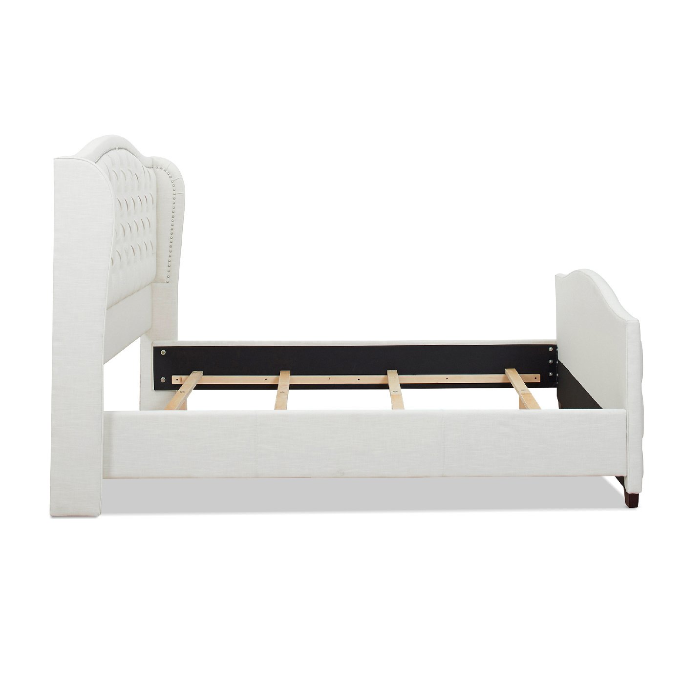 Marcella Upholstered Shelter Headboard Bed Set, King, Antique White Polyester
