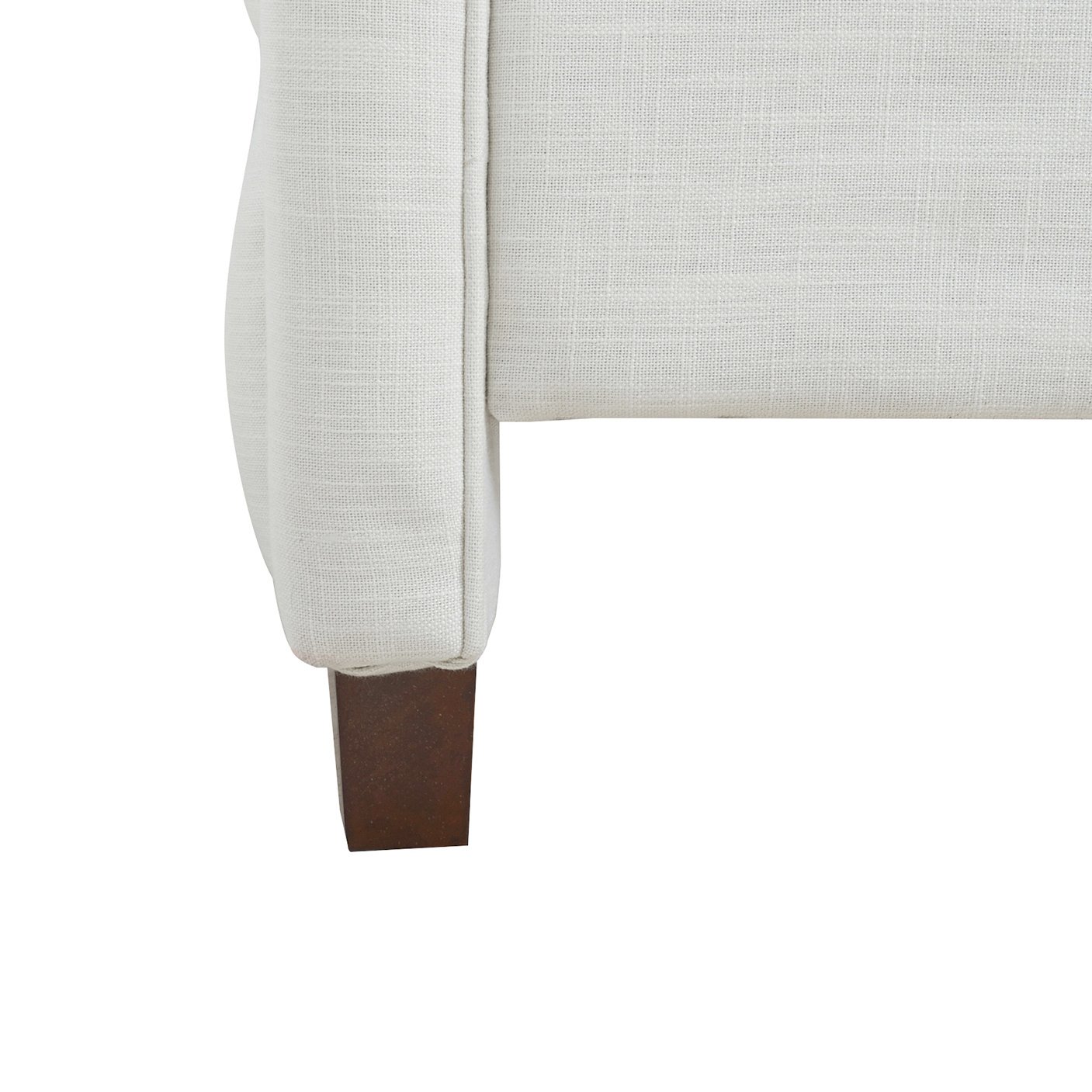 Transform your bedroom into a luxurious retreat with the Marcella Upholstered Shelter Headboard Bed Set. Expertly bench-made by skilled craftsmen, this king-size bed showcases an elegant antique white polyester upholstery that adds timeless sophistication to any decor. The shelter-style headboard, accented with hand-applied iron nailhead trim in a satin silver finish, creates a stunning focal point while offering a cozy, inviting feel. Built on a sturdy kiln-dried hardwood frame with 11-layer plywood for superior durability, this bed offers long-lasting support and comfort. Its high-density flame-retardant foam ensures a plush, medium-firm experience for restful nights.