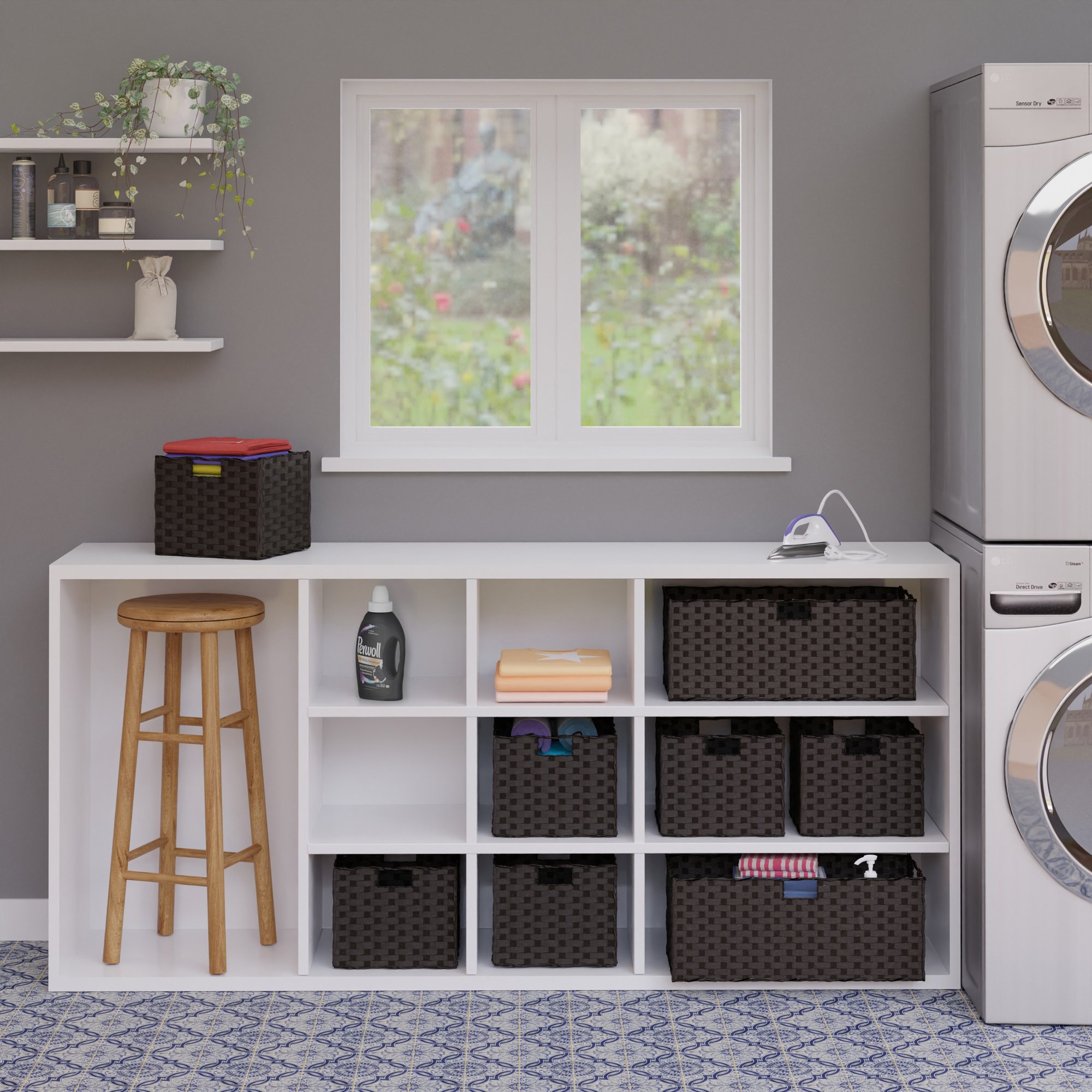 Set of 3 Small BasketsMade of woven polypropylene for durabilityBaskets fold for quick; easy storageCut-out handles for mobilityOpen size is  10.24"W x 11.02"D x 9.06"H