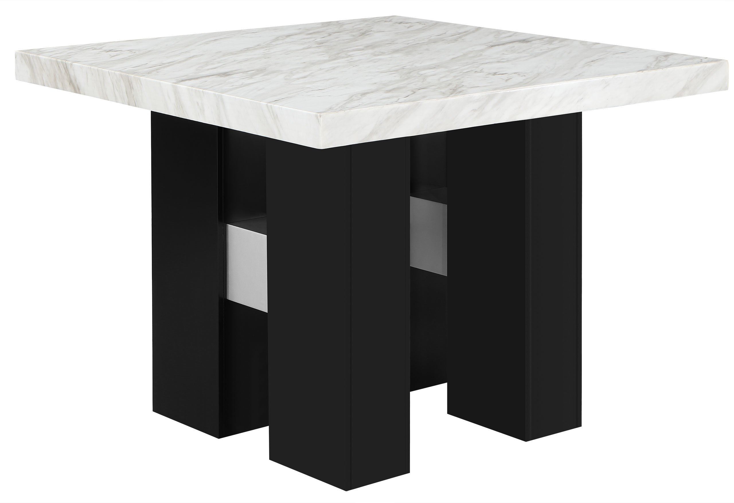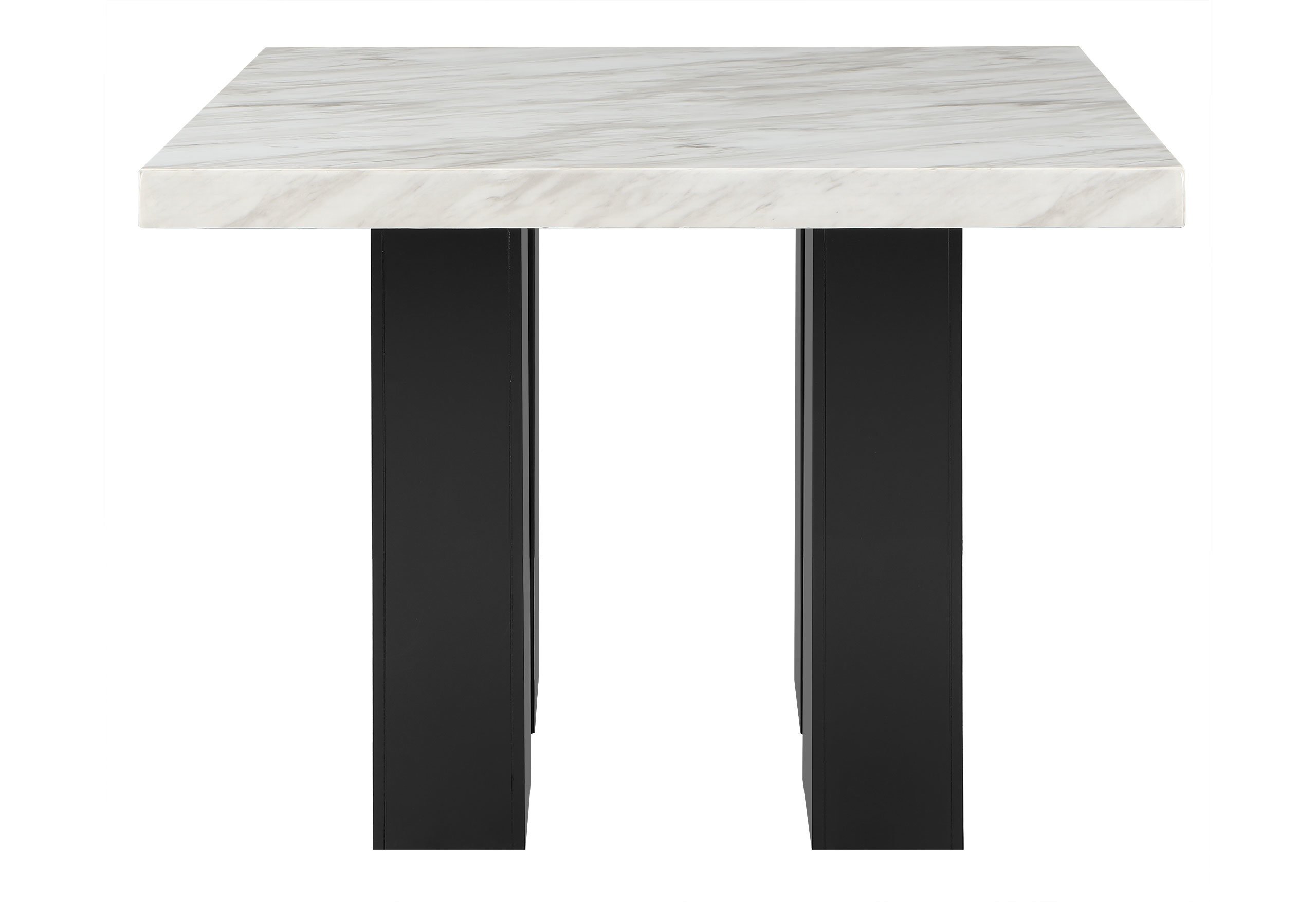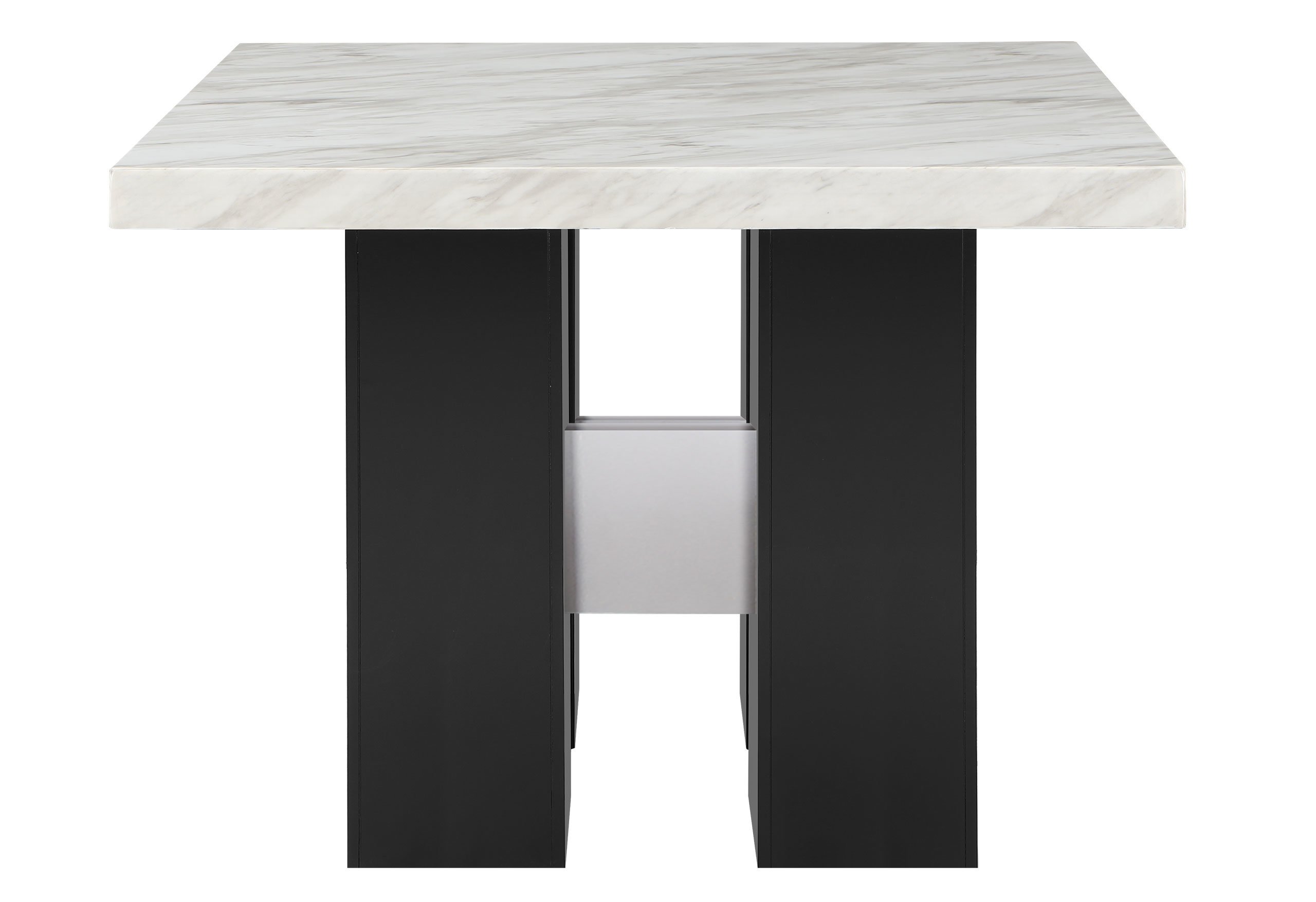 Transform your dining or entertainment space with the Mikha White Bar Table, a stunning blend of contemporary design and timeless elegance. Featuring a smooth white faux marble top and a bold black double pedestal base connected by a sleek silver connector, this table makes an unforgettable statement in any room. Its clean lines and sophisticated color contrast create a perfect balance between modern luxury and everyday functionality—ideal for both casual gatherings and elegant dinners.