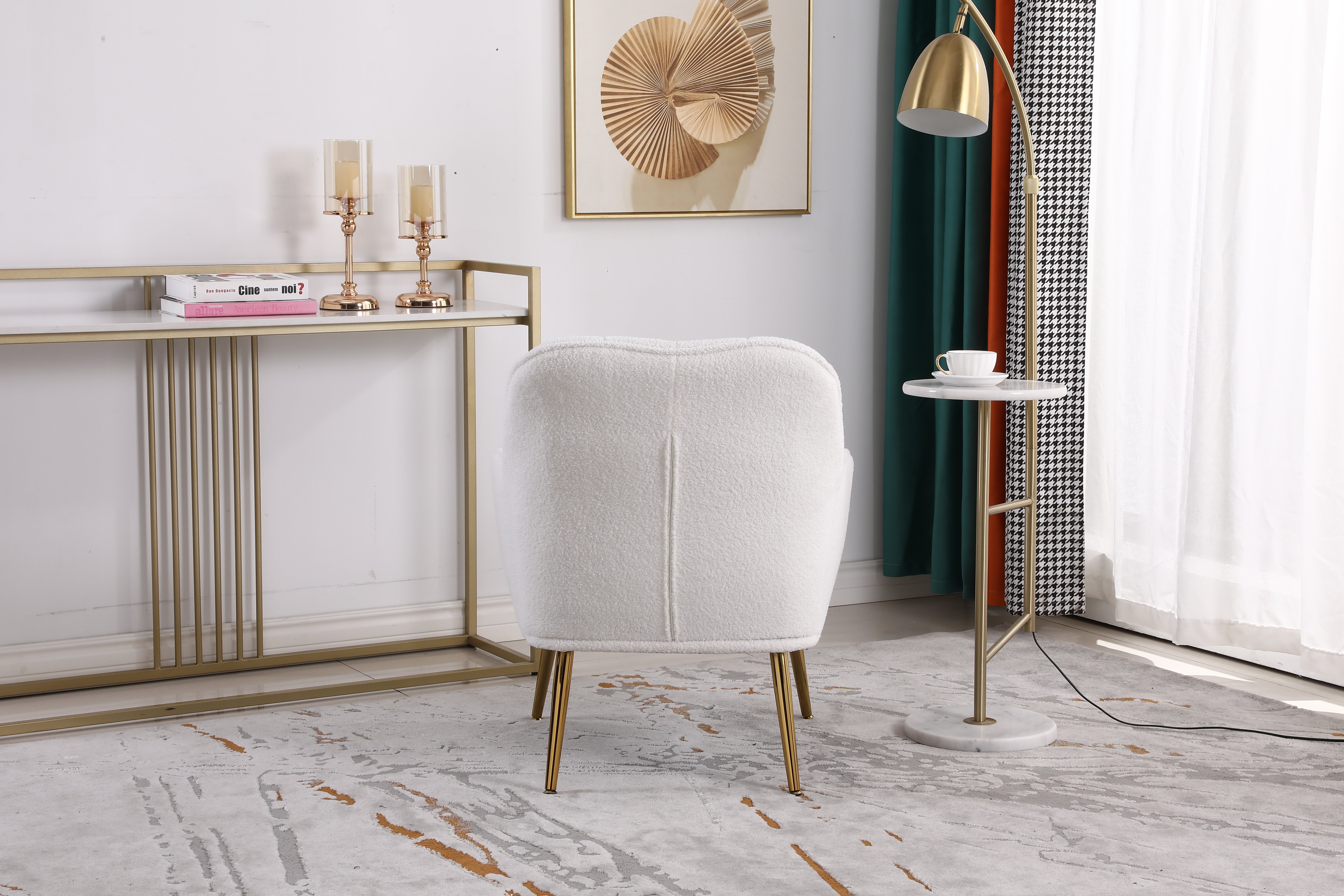 Modern Soft White Teddy fabric Ivory Ergonomics Accent Chair Living Room Chair Bedroom Chair Home Chair With Gold Legs And Adjustable Legs For Indoor
