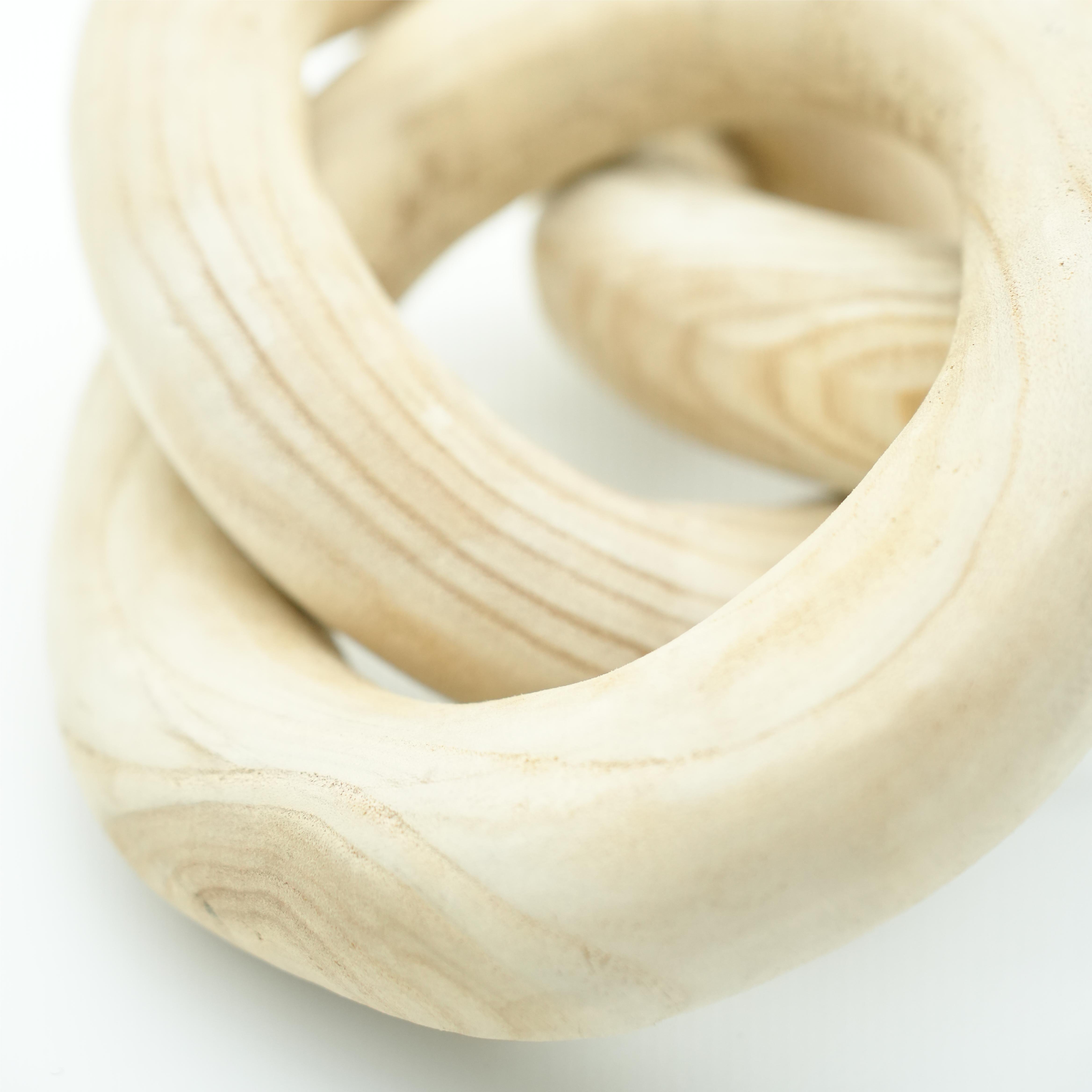 Introduce a rustic charm to your home decor with this hand-carved round natural wood chain decor. This beautiful 3-link decorative ornament is crafted from high-quality wood, showcasing the natural grain and texture. Perfect for adding a touch of boho elegance to your living space, this unique piece serves as an eye-catching decoration for your bookshelf, coffee table, or wall display. Each ring is carefully carved, making every chain a unique piece of art that enhances the aesthetic appeal of any room.