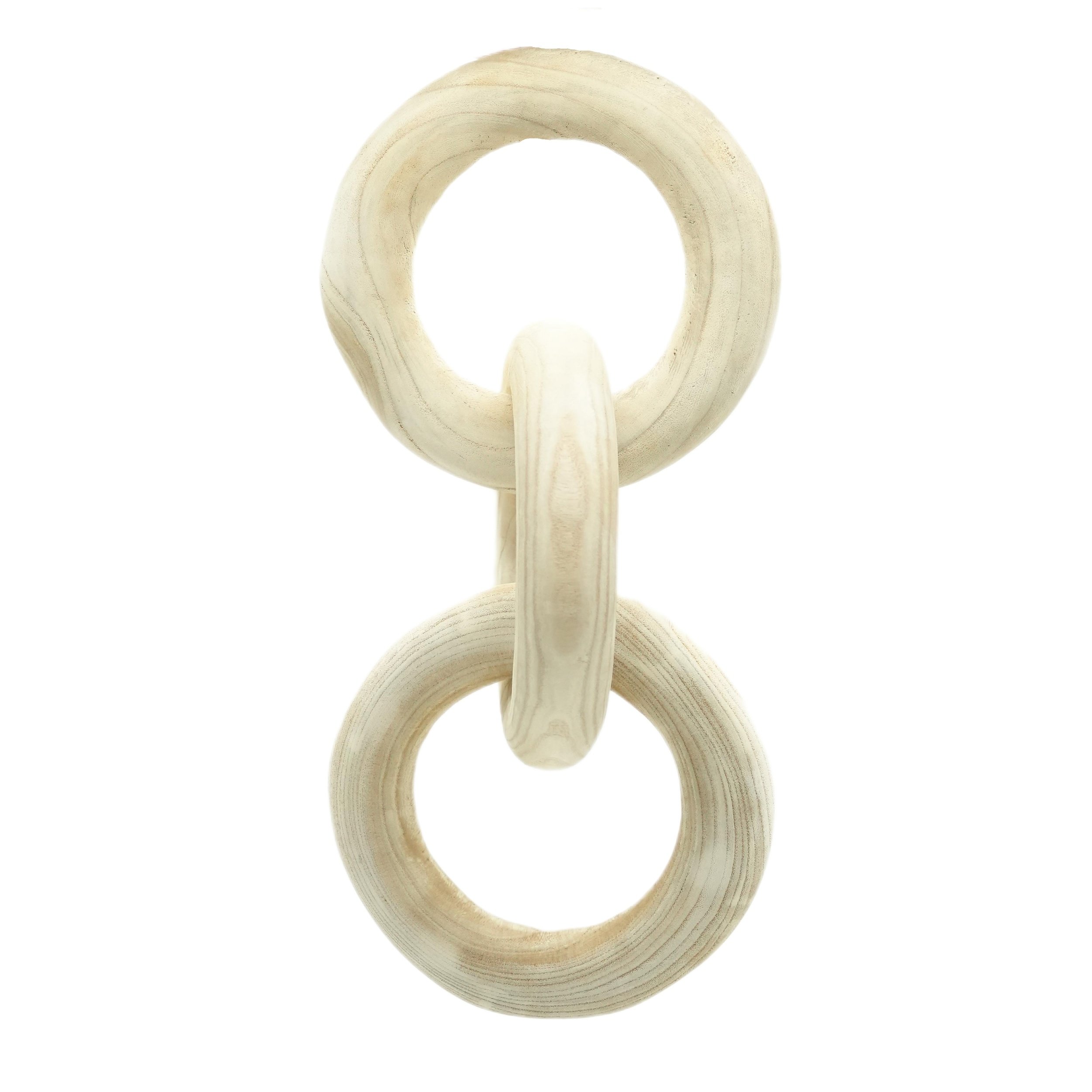 Natural Wood 3-Link Decorative Round Chain Decor for Bookshelf, Coffee Table