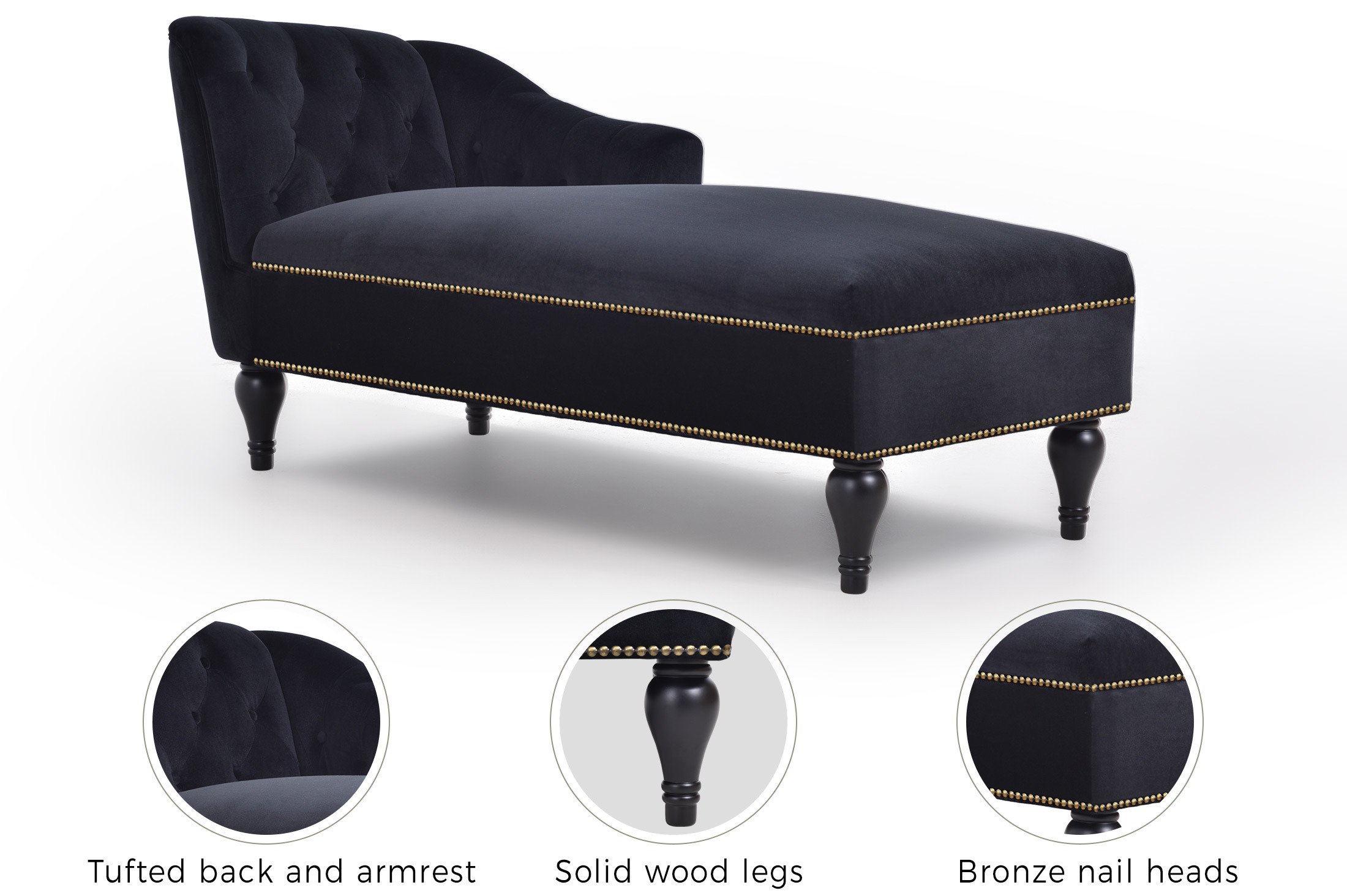 Home > [New+Video] 58''Velvet Chaise Lounge,Button Tufted Right Arm Facing Lounge Chair with Nailhead Trim & Solid Wood Legs for Living Room or Office