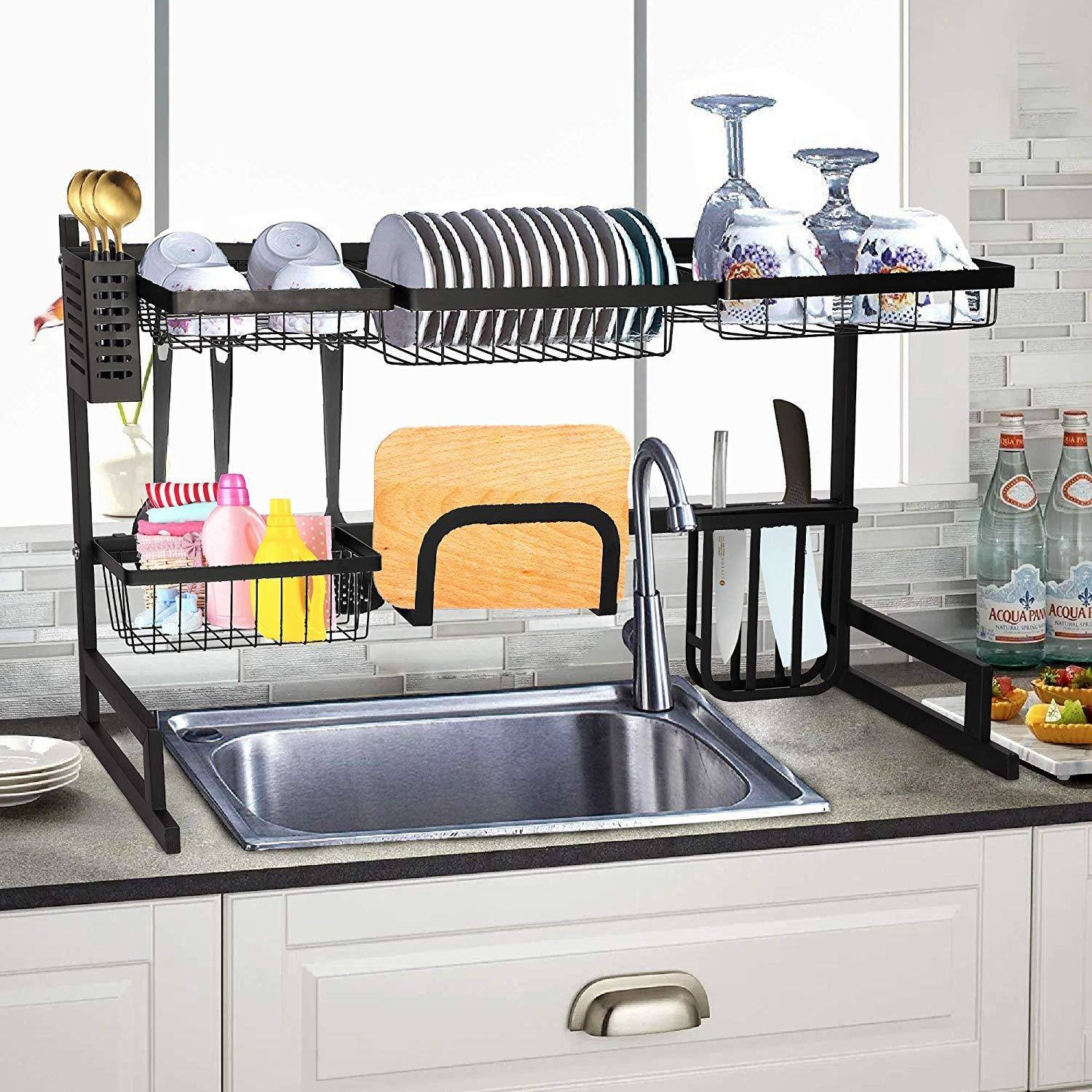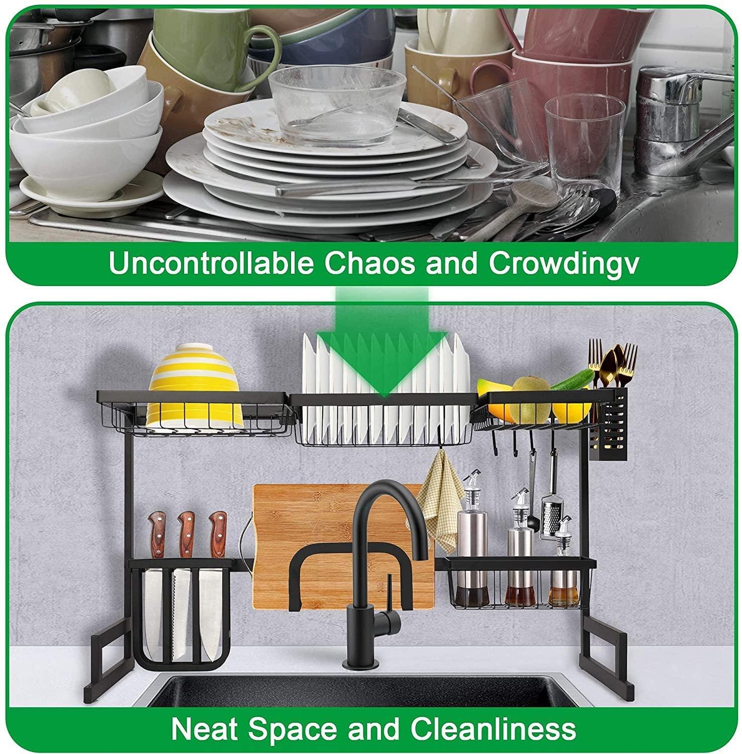 1.If you're tired of laying out a kitchen towel and setting your dishes across your counter-top to dry, then dish drying rack may be just what you need. This dish drying rack makes full use of the space over the sink, which offers reasonable space utilization for kitchen. And the water will naturally