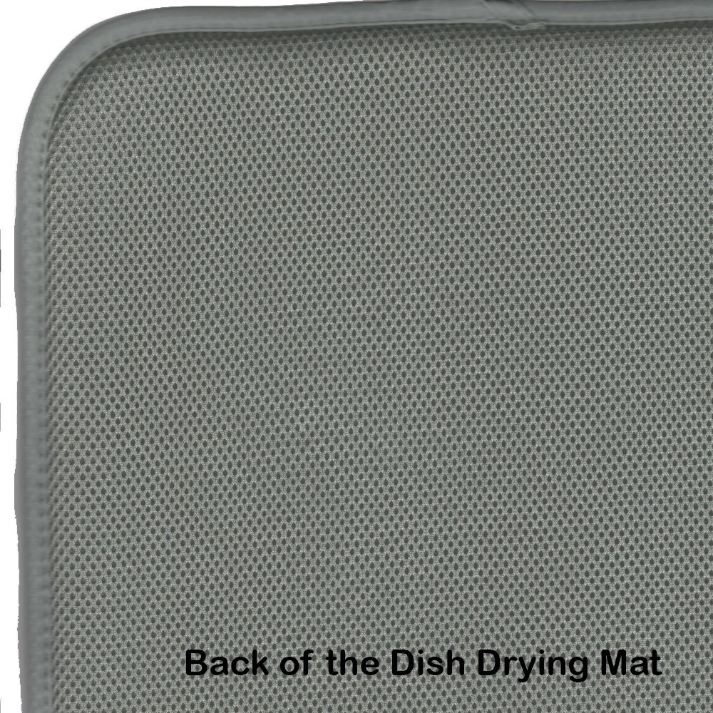Dish Drying Mat featuring breed specific Pelican artwork. Say goodbye to messy countertops and soggy dish towels with our innovative dish drying mat. Our high-quality dish drying pad is designed to keep your countertops dry while offering a stylish and efficient solution. Whether you're air drying dishes, glasses, stemware, silverware, pots, pans, bottles, or even fruits and vegetables, our dish mat is the perfect choice. The 14 inches x 22 inches size fits most counters and dish drying racks, and the non-slip design ensures stability. Made with water-absorbent polyester and a polyurethane foam insert, our dish drying mat is not only functional but also durable. It's machine washable and printed in the USA for long-lasting use. The beautiful artwork adds flair to your kitchen decor, making it a perfect housewarming gift or present for any occasion. Upgrade your kitchen experience with our absorbent and versatile dish drying mat.
