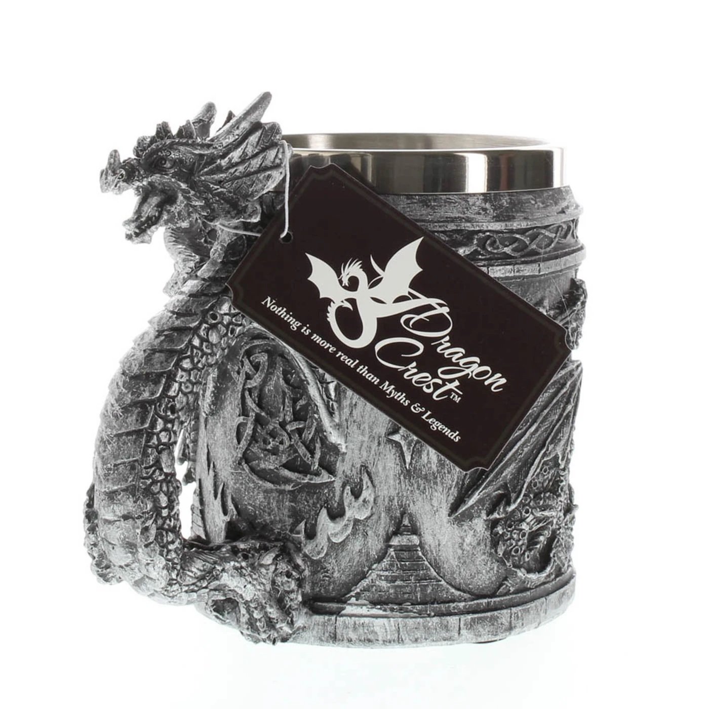 • This medieval-inspired mug is the most intimidating way to keep your items in order as a serpentine dragon guards your writing quills or your collection of coins stored within. Fully decorated with dragon reliefs and Celtic symbols, this mug will bring out the true warrior in you as it rests on your desk or bookshelf. (For decorative purposes only)