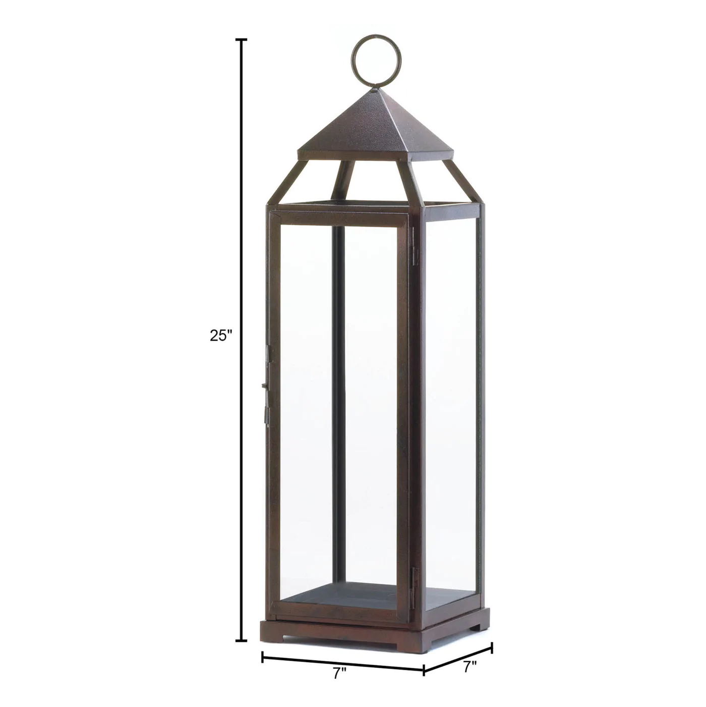 • The lantern weighs 5.2 lbs. and measures 7 inches by 7 inches by 25 inches.