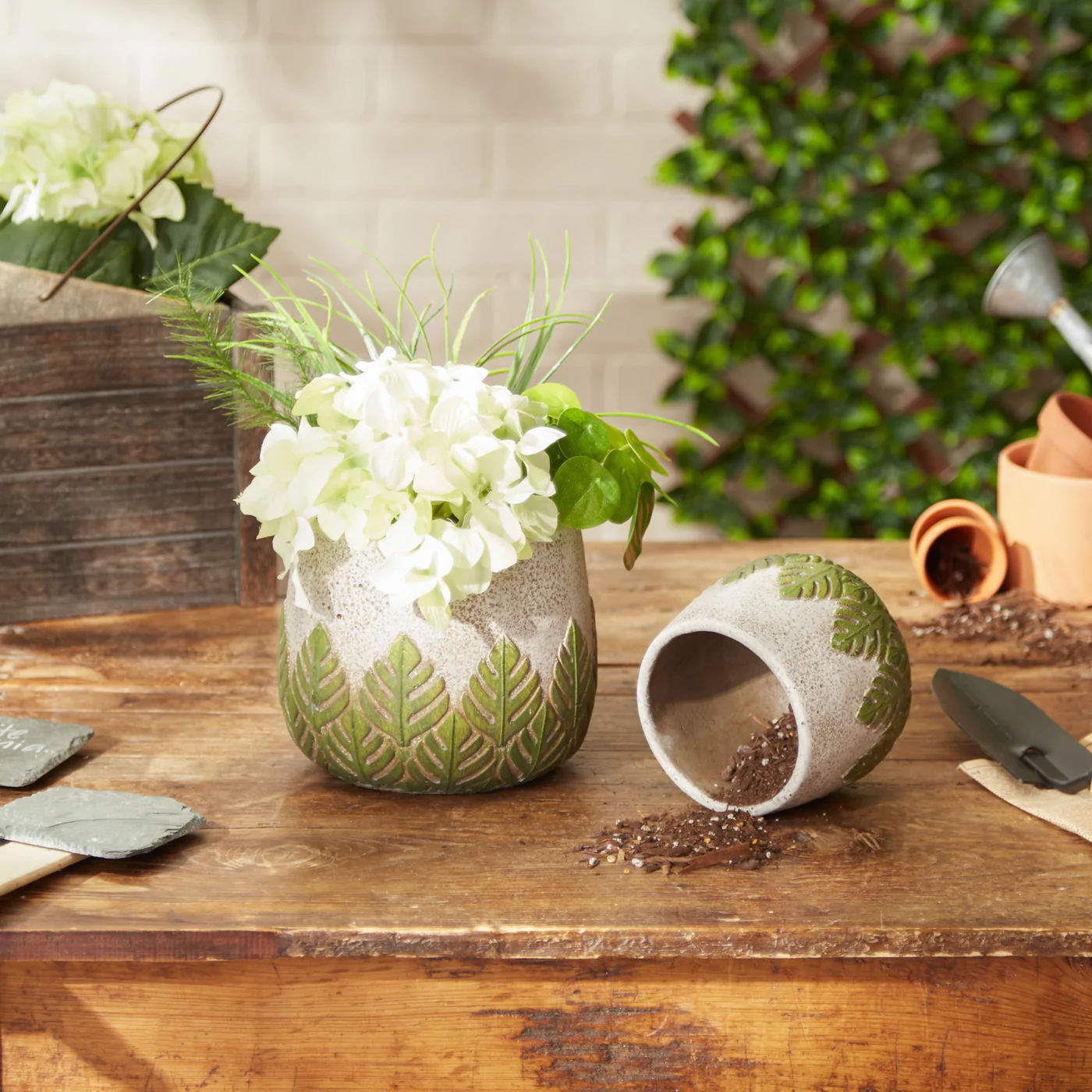 Home > GREEK LEAF CEMENT FLOWER POT SET/2