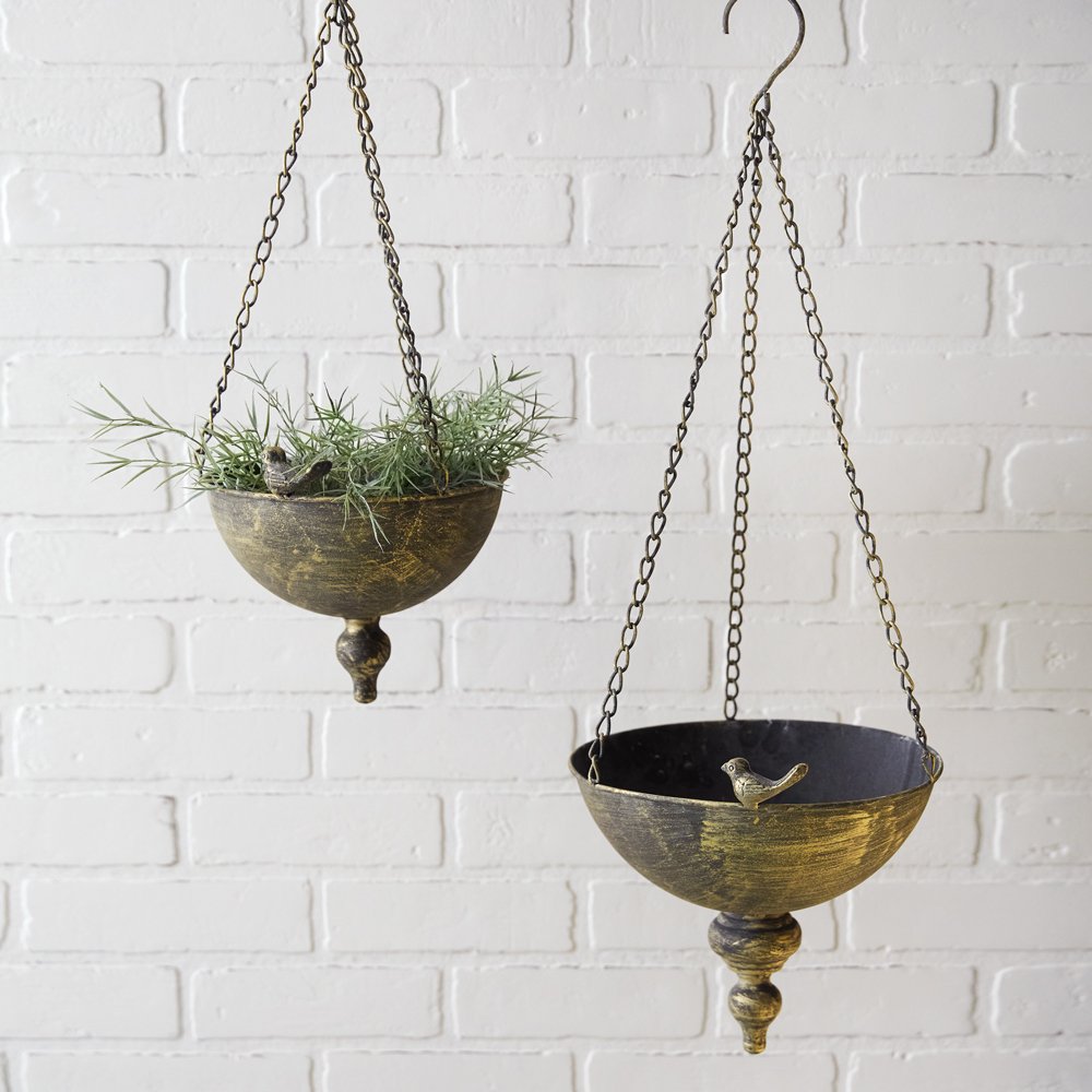 Set of Two Hanging Metal Finial Planters Set of Two Hanging Metal Finial Planters