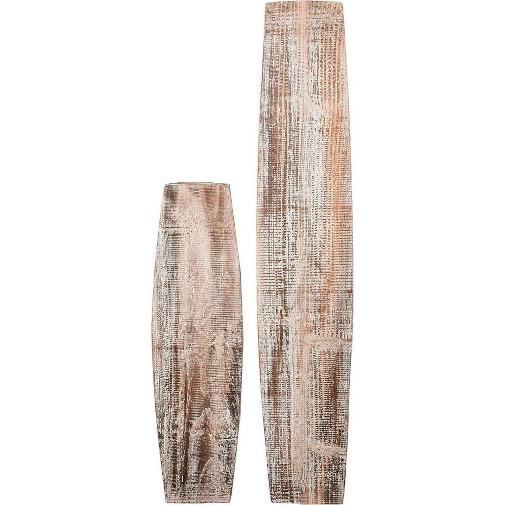 Home > Set of White Washed Tall Oblong Wooden Vases, Large & Small, Brown