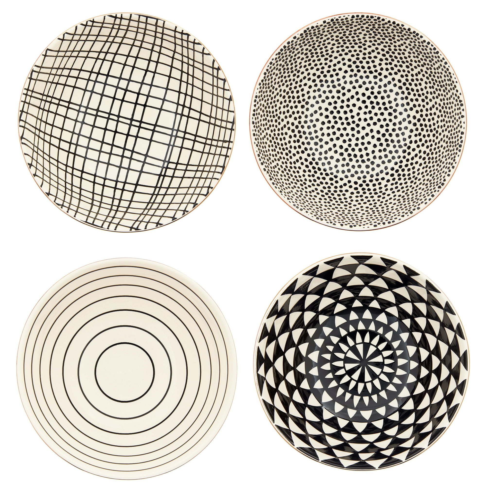 Black & White Assorted Stoneware Round Bowls, 4 Pack
