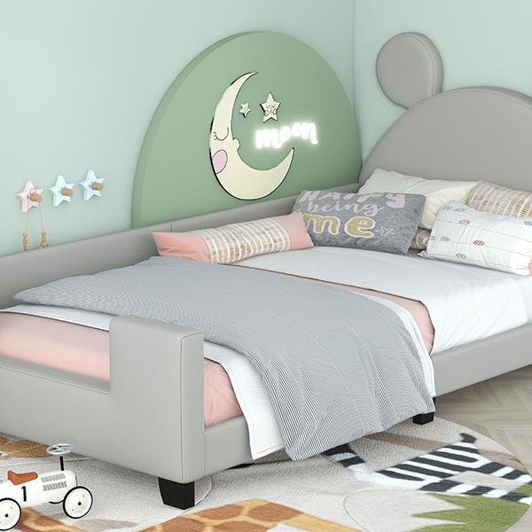 Twin Size Upholstered Daybed with Carton Ears Shaped Headboard, Grey Twin Size Upholstered Daybed with Carton Ears Shaped Headboard, Grey Twin Size Upholstered Daybed with Carton Ears Shaped Headboard, Grey Twin Size Upholstered Daybed with Carton Ears Shaped Headboard, Grey Twin Size Upholstered Daybed with Carton Ears Shaped Headboard, Grey