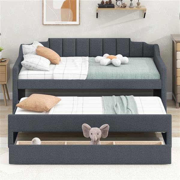 Twin Size Upholstered Daybed with Trundle and Three Drawers,Grey Twin Size Upholstered Daybed with Trundle and Three Drawers,Grey Twin Size Upholstered Daybed with Trundle and Three Drawers,Grey Twin Size Upholstered Daybed with Trundle and Three Drawers,Grey Twin Size Upholstered Daybed with Trundle and Three Drawers,Grey