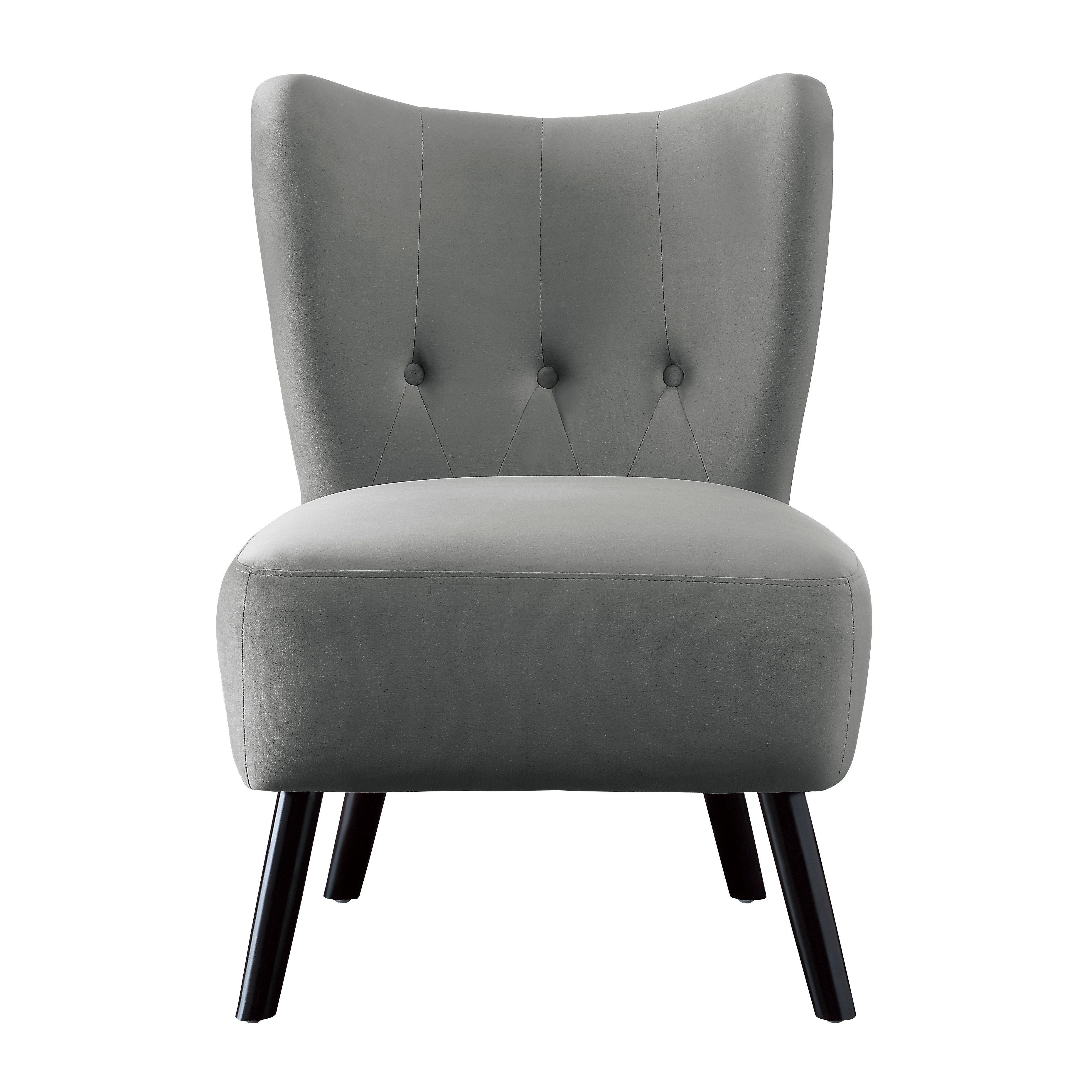 Unique Style Gray Velvet Covering Accent Chair Button-Tufted Back Brown Finish Wood Legs Modern Home Furniture