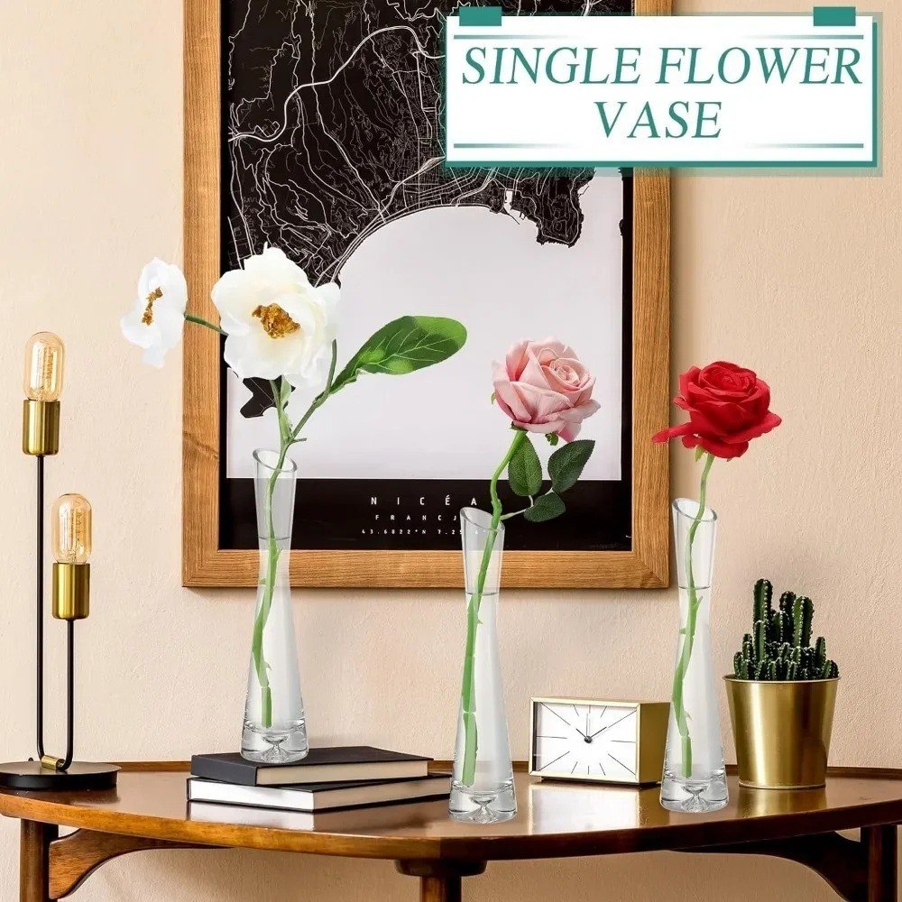 • Quality Material: these flower bud vases are made of quality glass material, which is sturdy and durable; The thickened and weighted base can prevent the glass vase from tipping over, and the design of narrow top and wide bottom ensures its durability and stability
