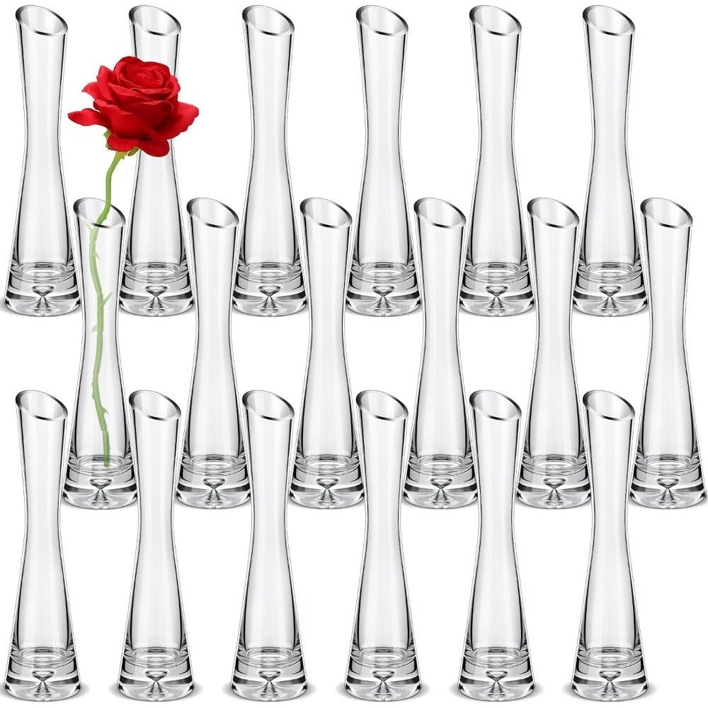 • Package Include: you will receive 18 pieces of tall glass vases (flowers are not included) for transparent centerpieces with slanted openings, with slanted opening and small waist shape, simple, fashionable and elegant; Glass vases are perfectly matched with a variety of home decor; The packaging is firm, enough quantity can meet your use and gift giving needs