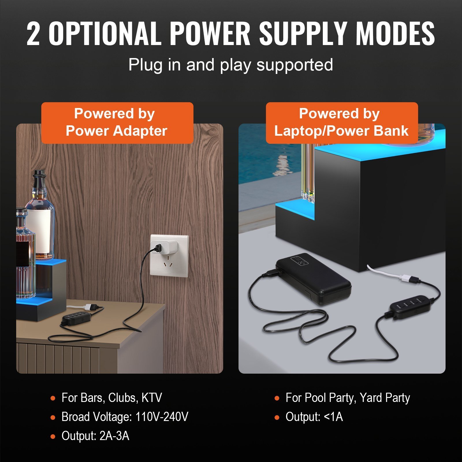 3. Dual Power Options: Keep the party going wherever you are! Our lighted bar shelves are powered by a 110-240 V power adapter or can be conveniently charged via a laptop or power bank. Perfect for both indoor and outdoor events, ensuring your lights never run out of power.