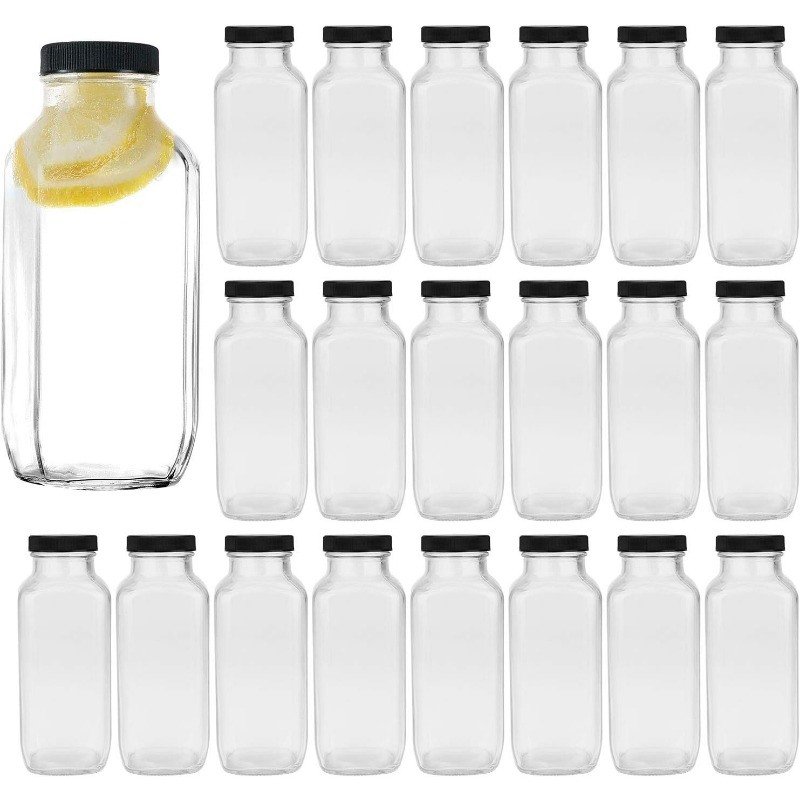 Home > Vintage Water,Glass Drinking Bottles 16oz,Square Beverage 500ml With Lids For Kombucha,Tea,Glass Homemade Drinks, 20Pack