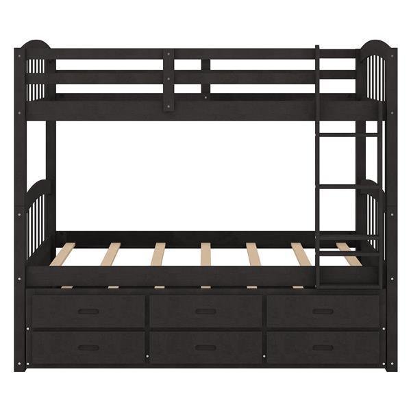 Wood Bunk Bed with Trundle and Drawers, Espresso